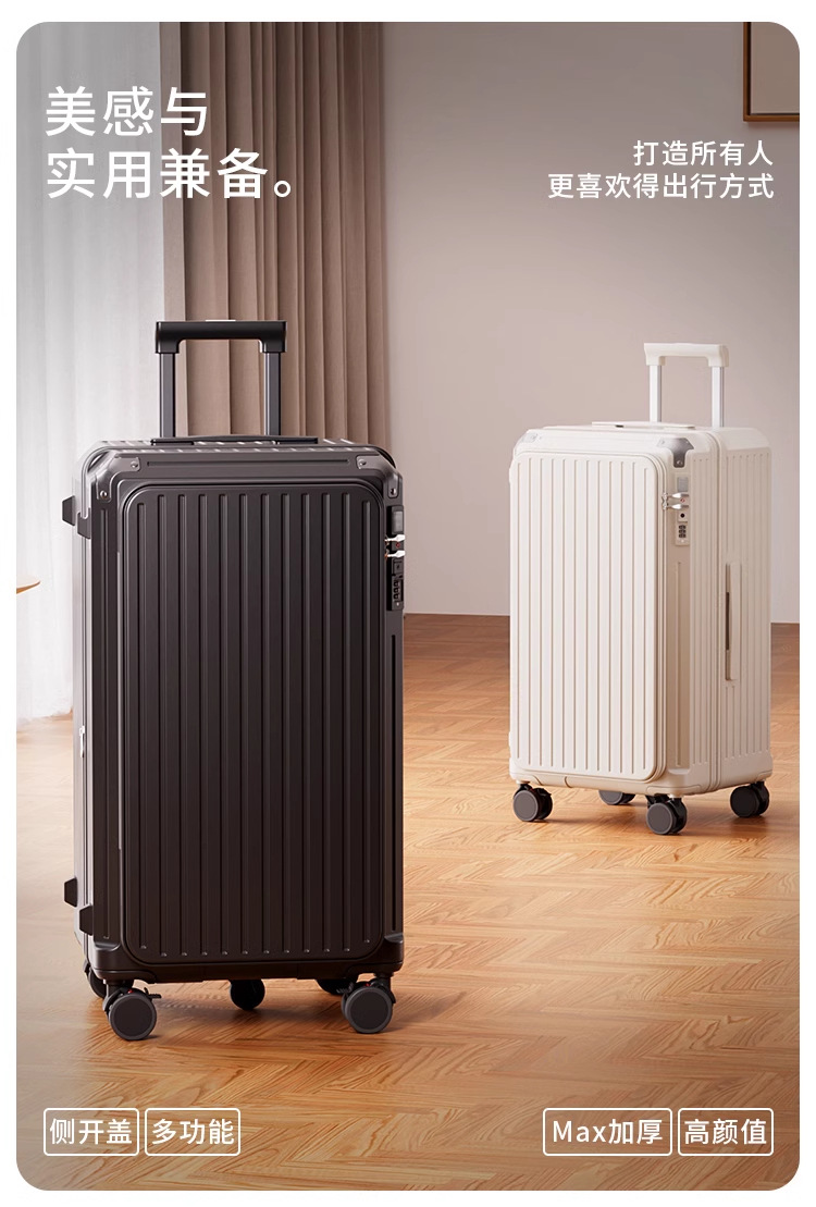전면 개방형 뚜껑 트렁크, 대용량, 확장형, 새로운 트롤리 케이스, 여성용 비밀번호 가죽 케이스, 남성용 여행용 케이스, 긁힘 방지스토어 가기