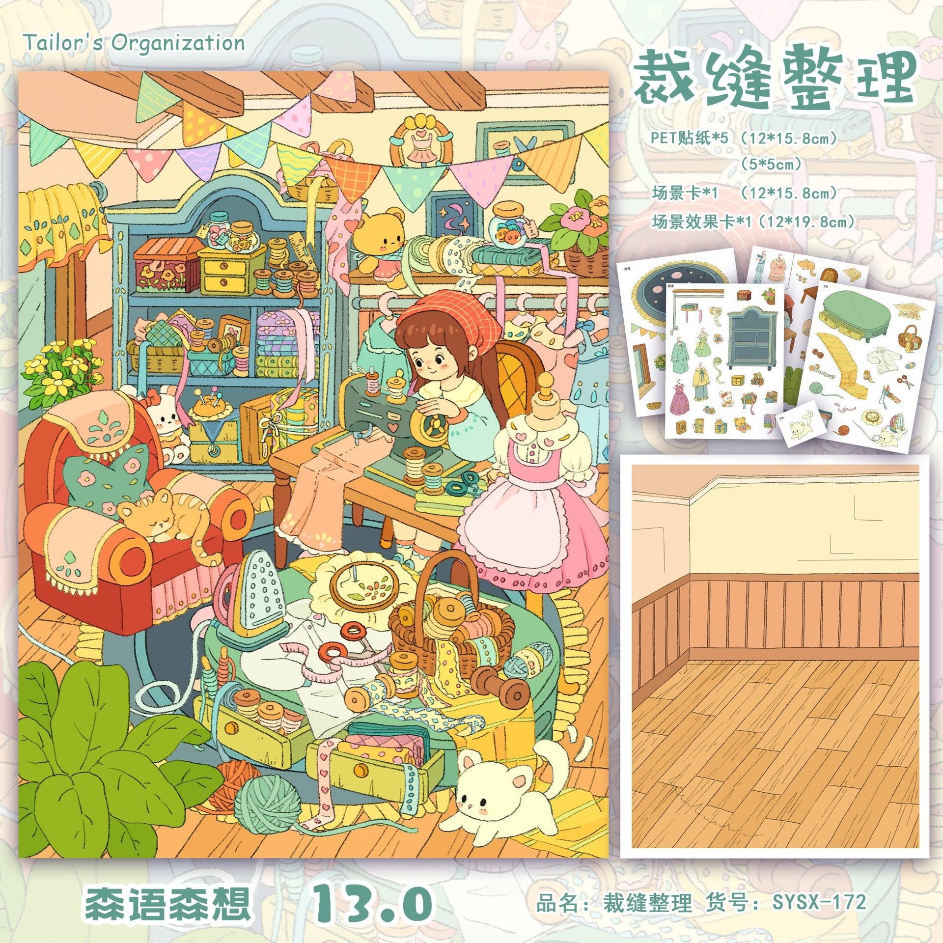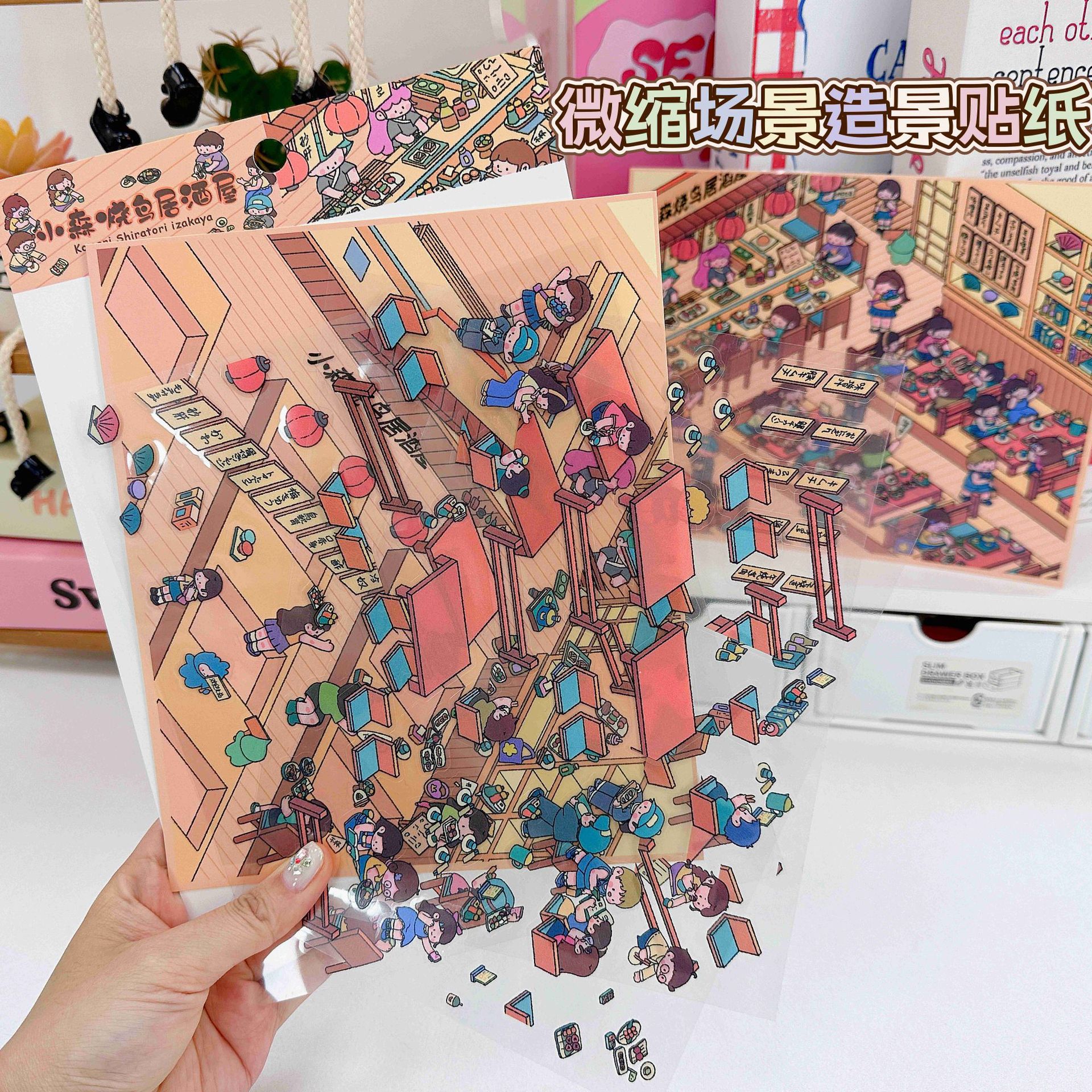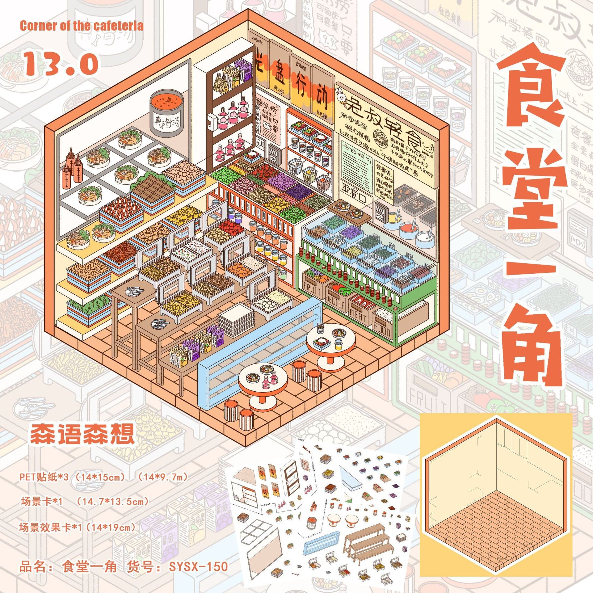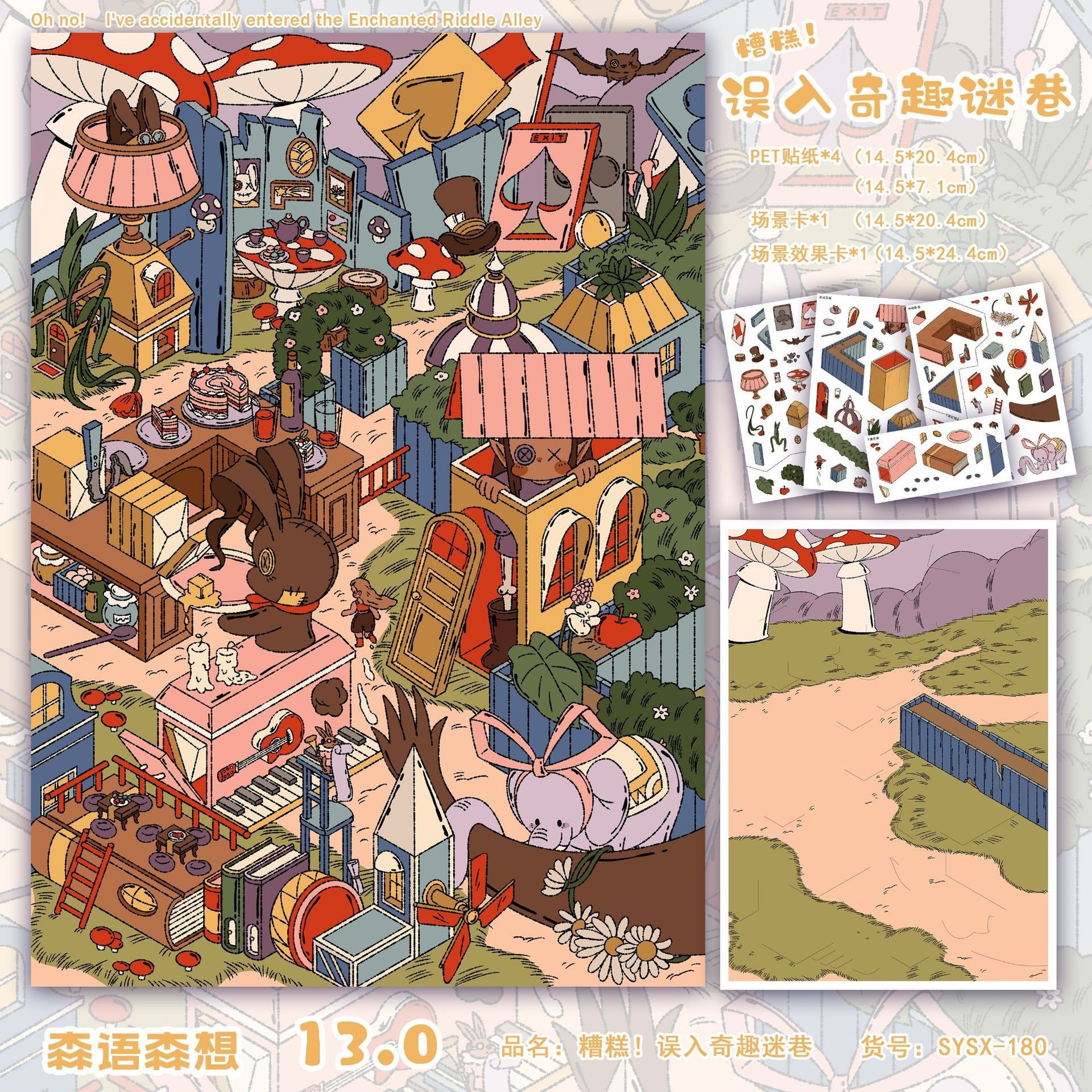 Mori Sen은 미니어처 장면 조경 스티커를 원합니다. 3D 스택 스테레오 비전 미니어처 오두막 어린이 교육 장난감 diy스토어 가기