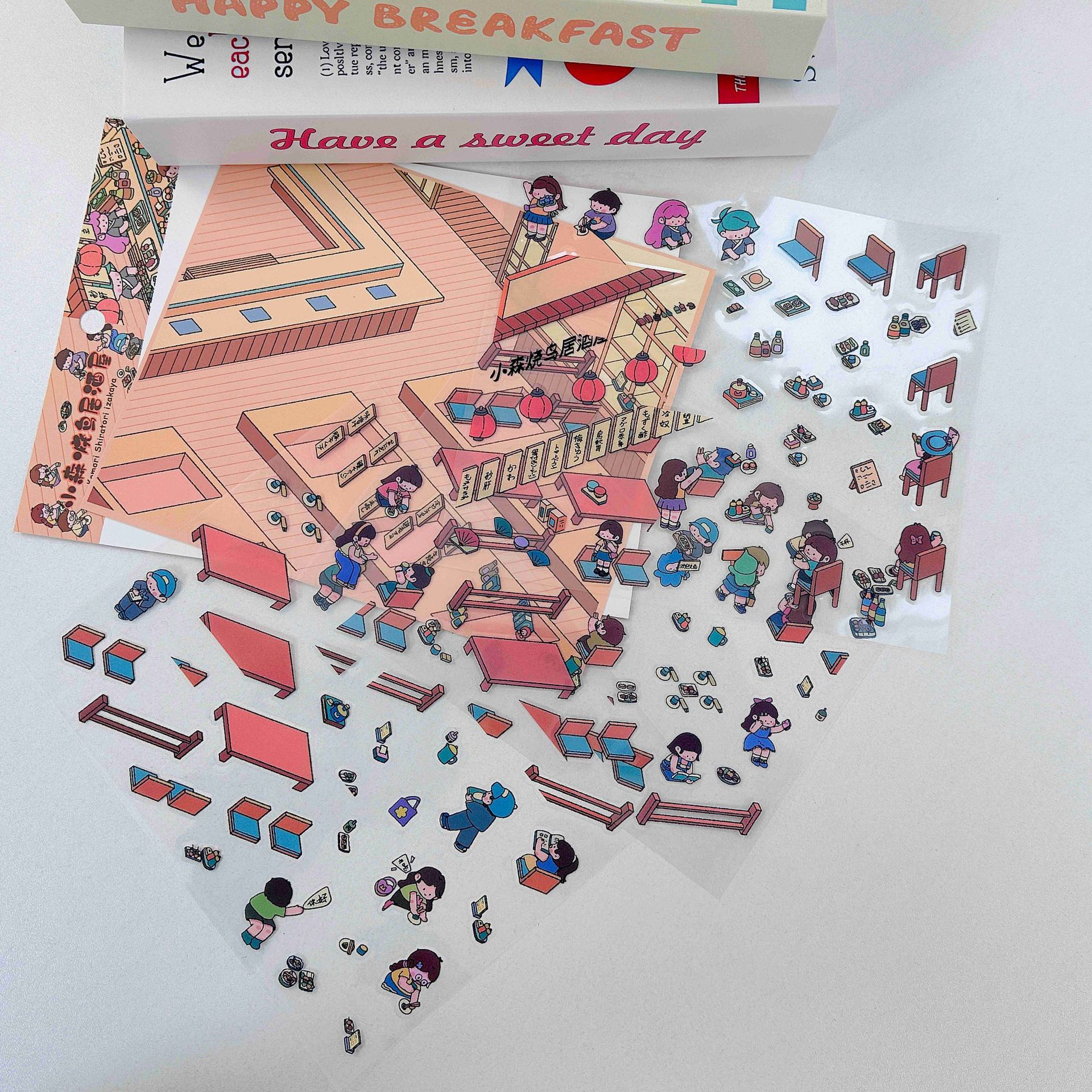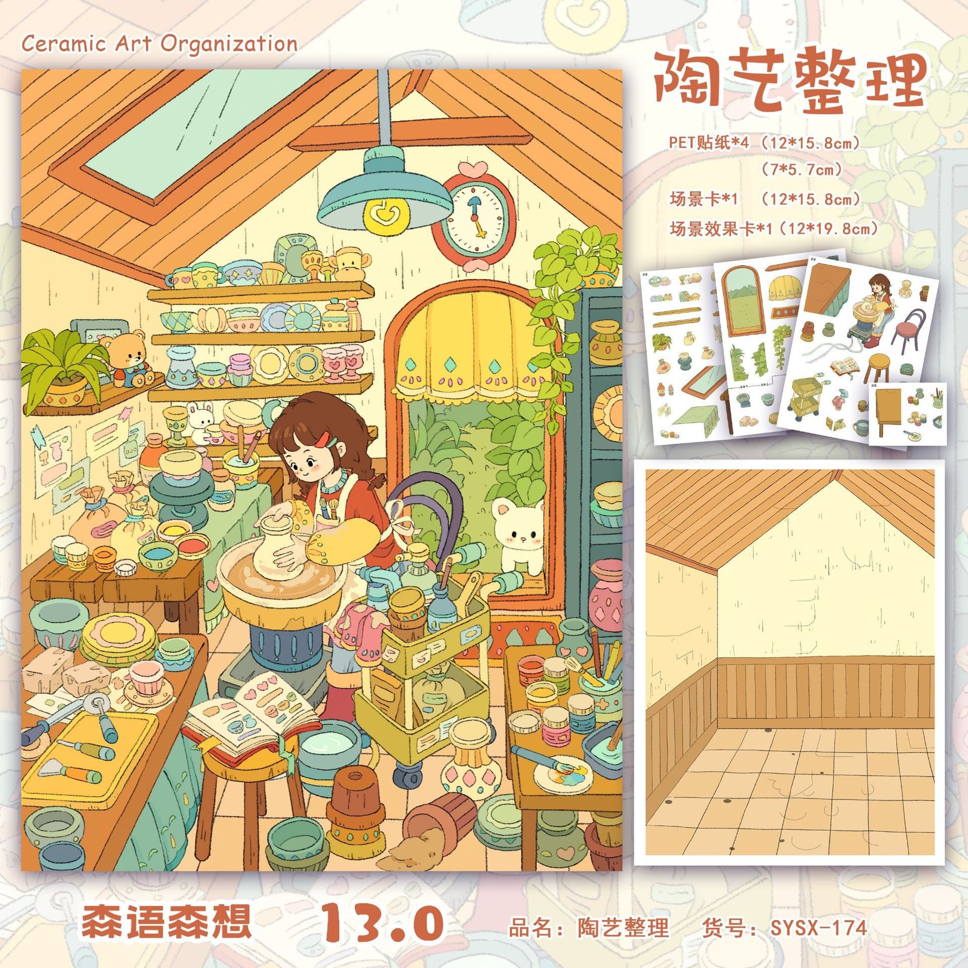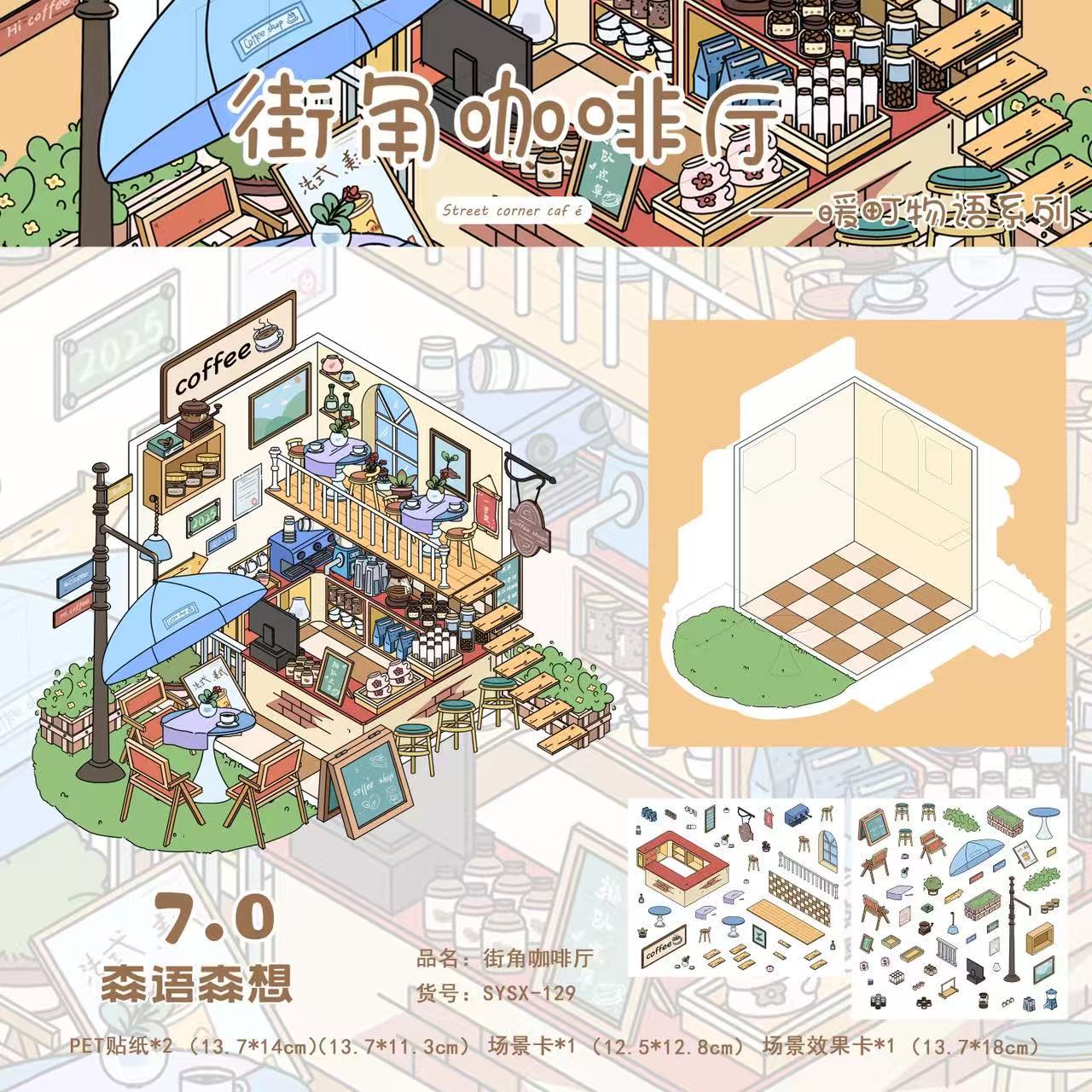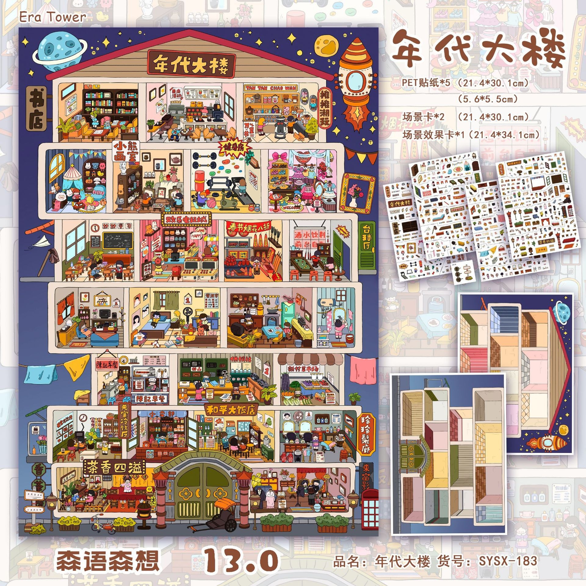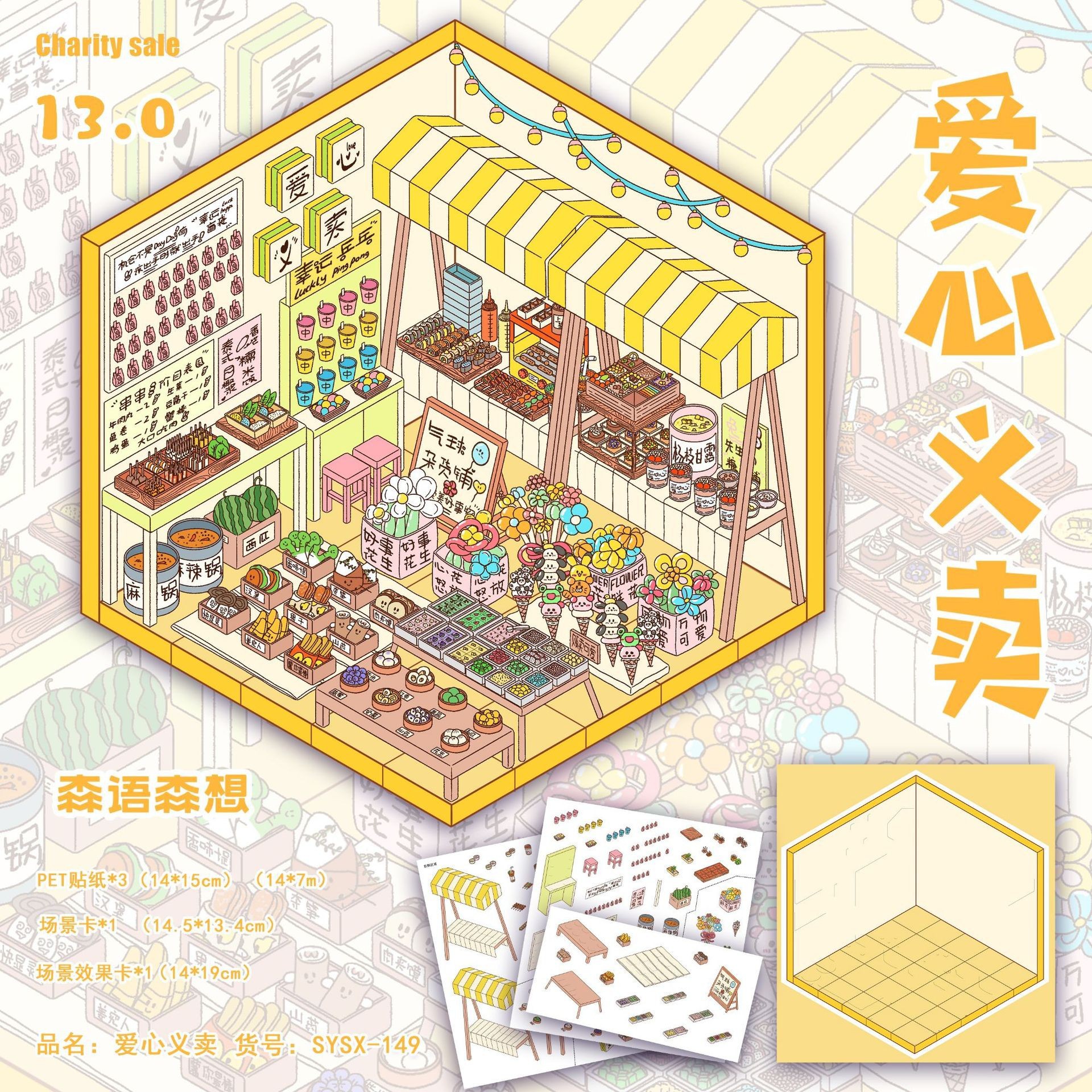 Mori Sen은 미니어처 장면 조경 스티커를 원합니다. 3D 스택 스테레오 비전 미니어처 오두막 어린이 교육 장난감 diy스토어 가기