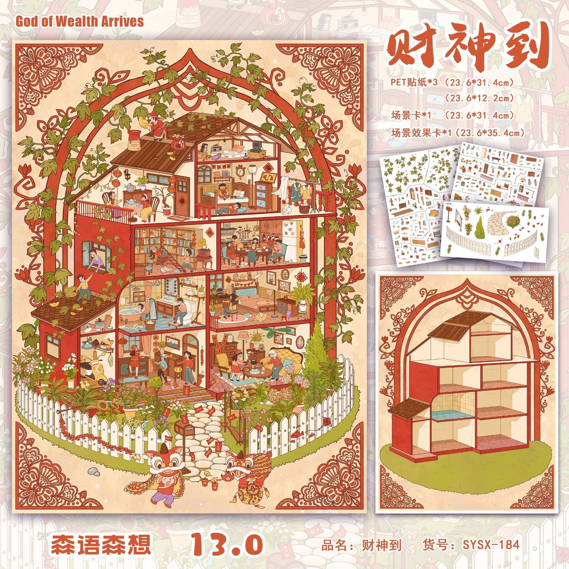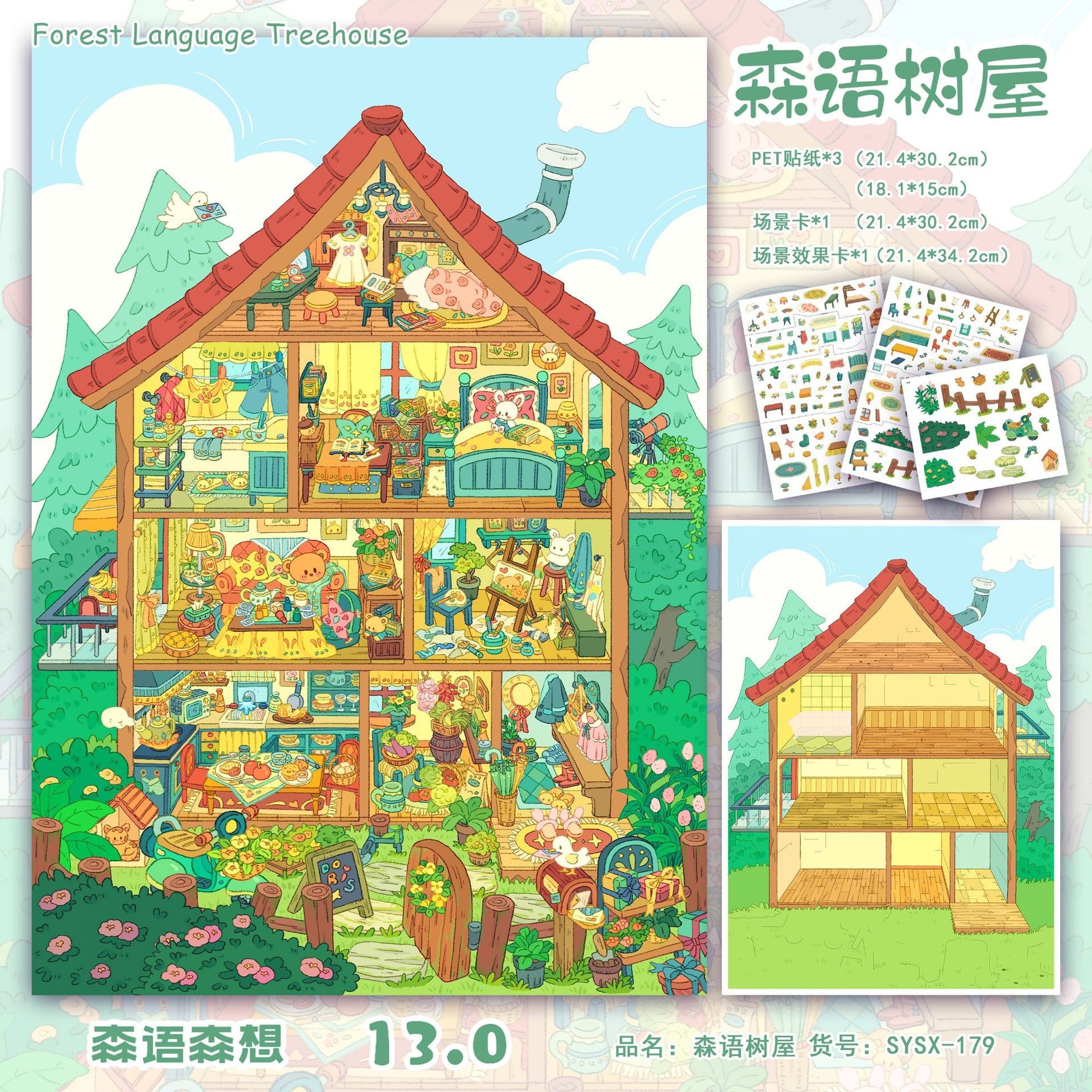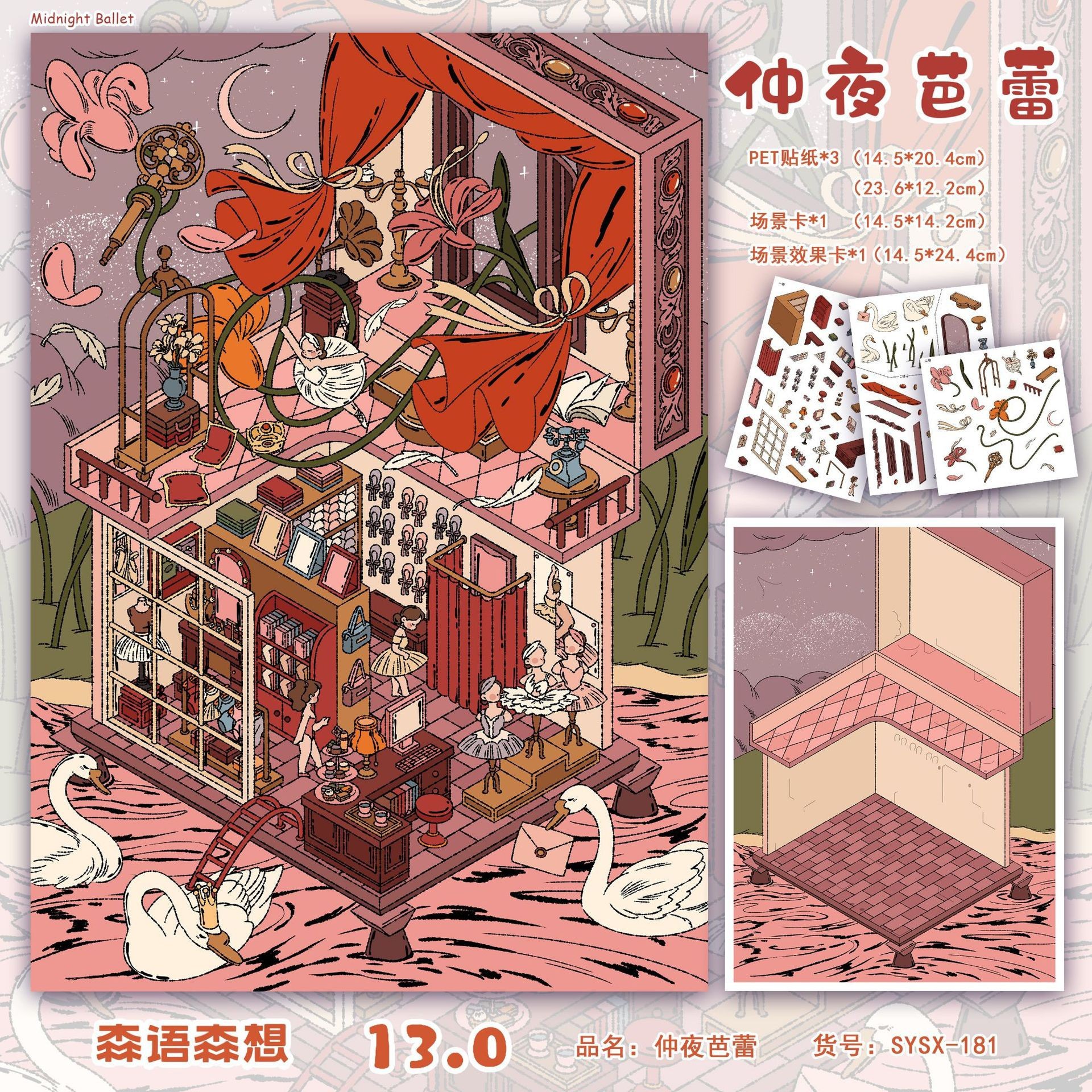 Mori Sen은 미니어처 장면 조경 스티커를 원합니다. 3D 스택 스테레오 비전 미니어처 오두막 어린이 교육 장난감 diy