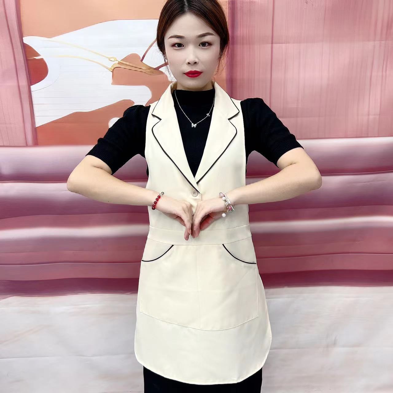 웨이터 오버롤 네일 아트 조끼 앞치마 로고 뷰티 네일 아트 케이터링 더블 레이어 방수 사용자 정의스토어 가기
