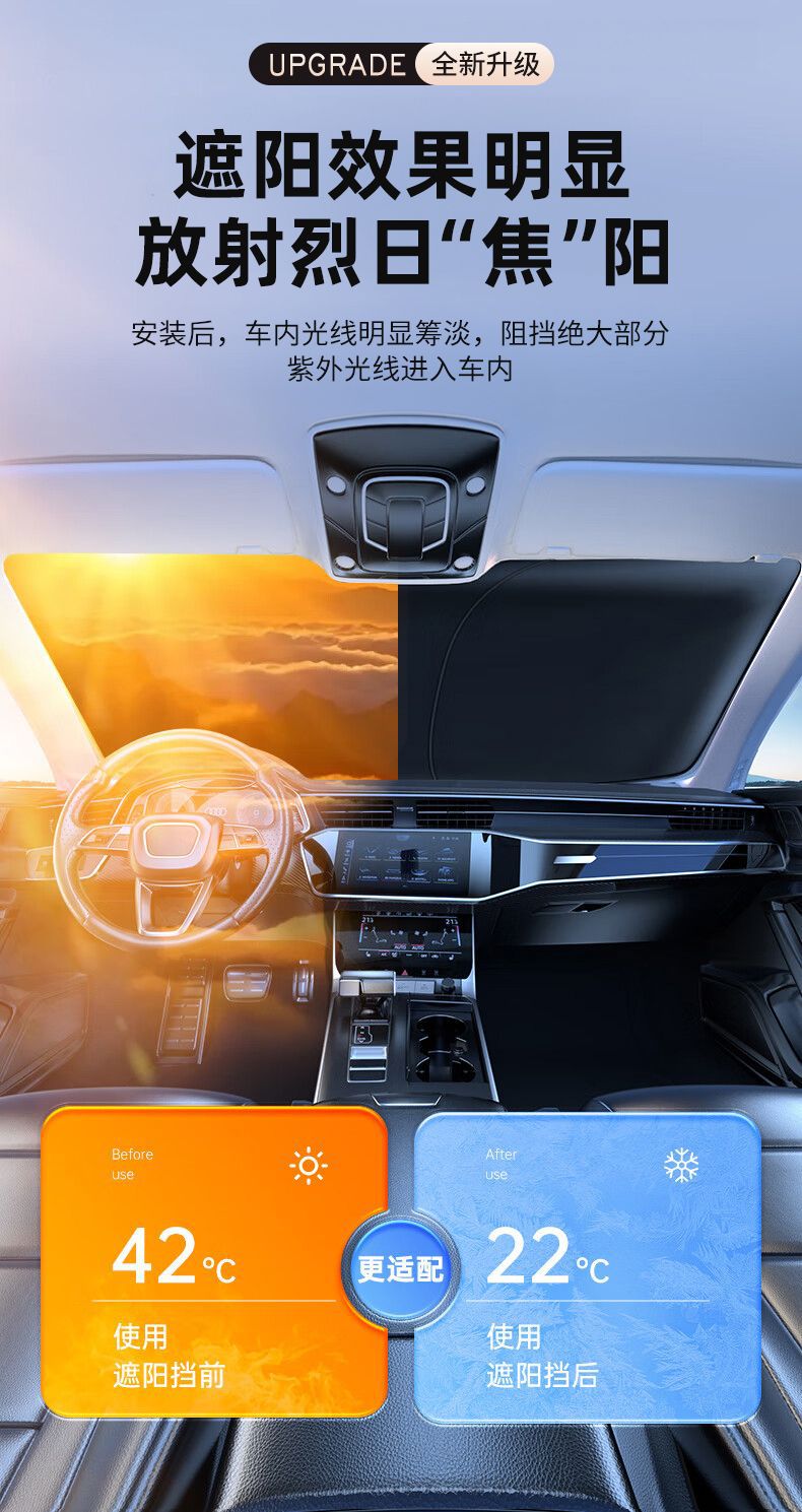Karuiya 자동차 차양 전면 방패 선 스크린 단열 차양 커튼 자동차 앞 유리창 차양 덮개 차양스토어 가기