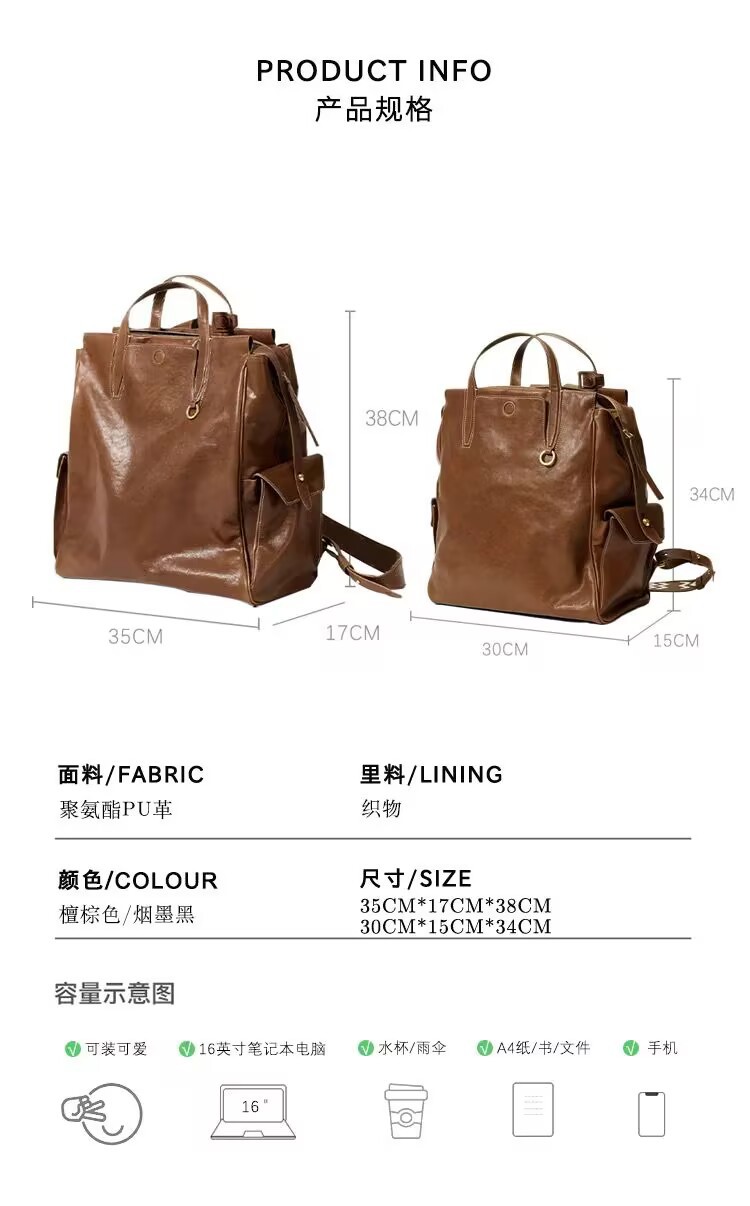 송산하 트레일링 시리즈 대형 백팩 젠더리스 레트로 식물성 무두질 가죽 16inch 컴퓨터 가방스토어 가기