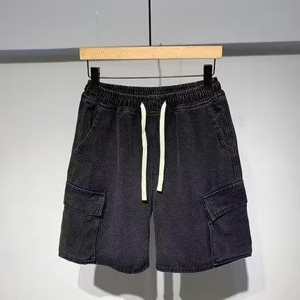 일본식 작업복 기능성 데님 반바지 남자 5 점 바지 2024 여름 새로운 캐주얼 느슨한 중간 바지