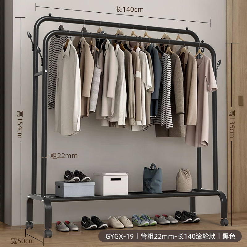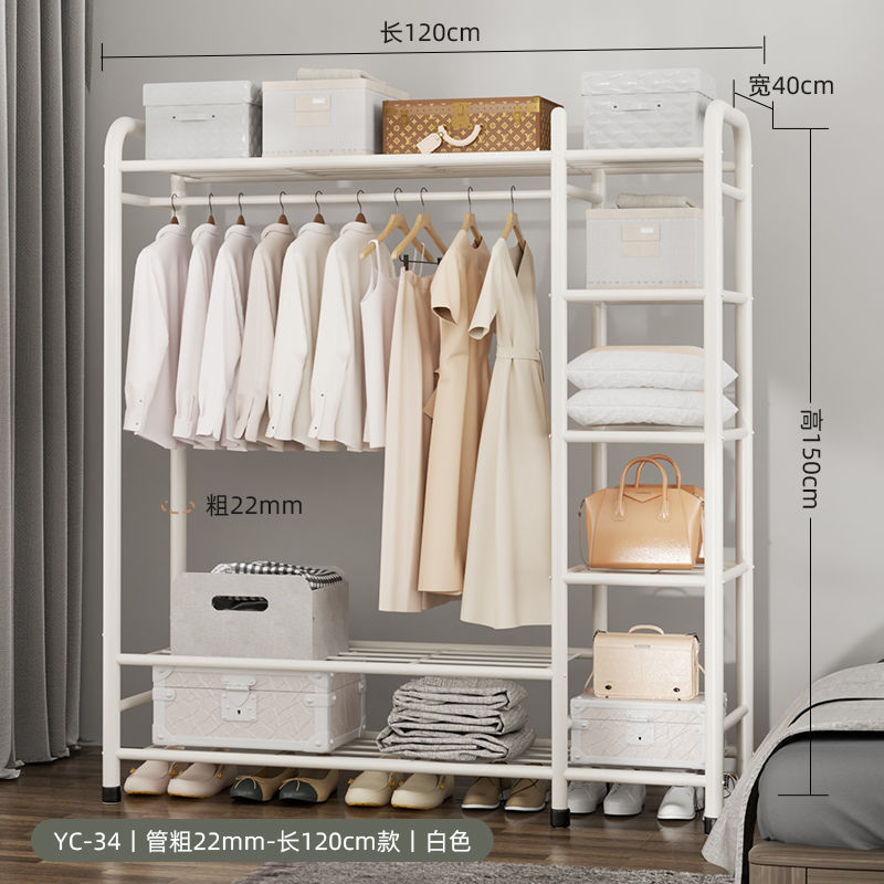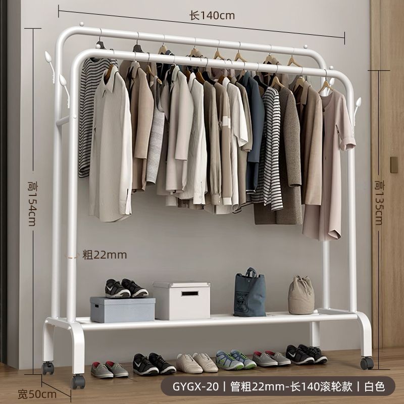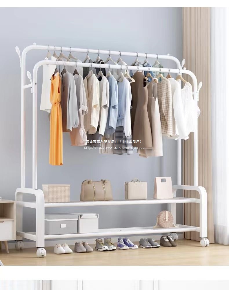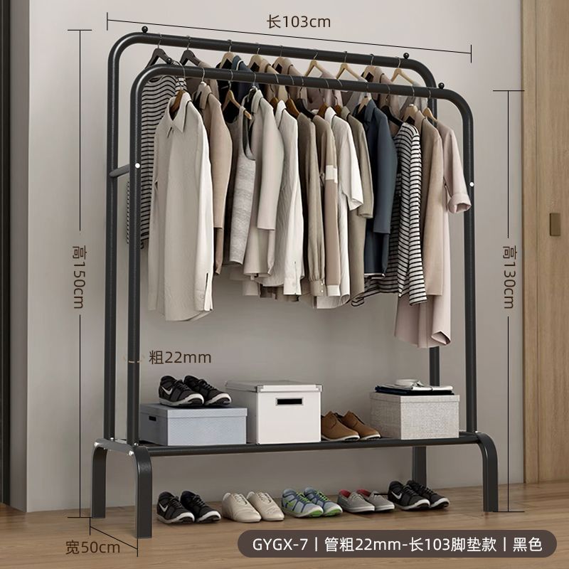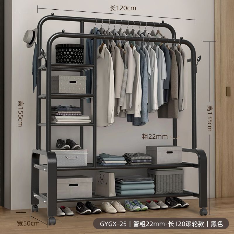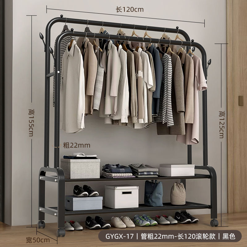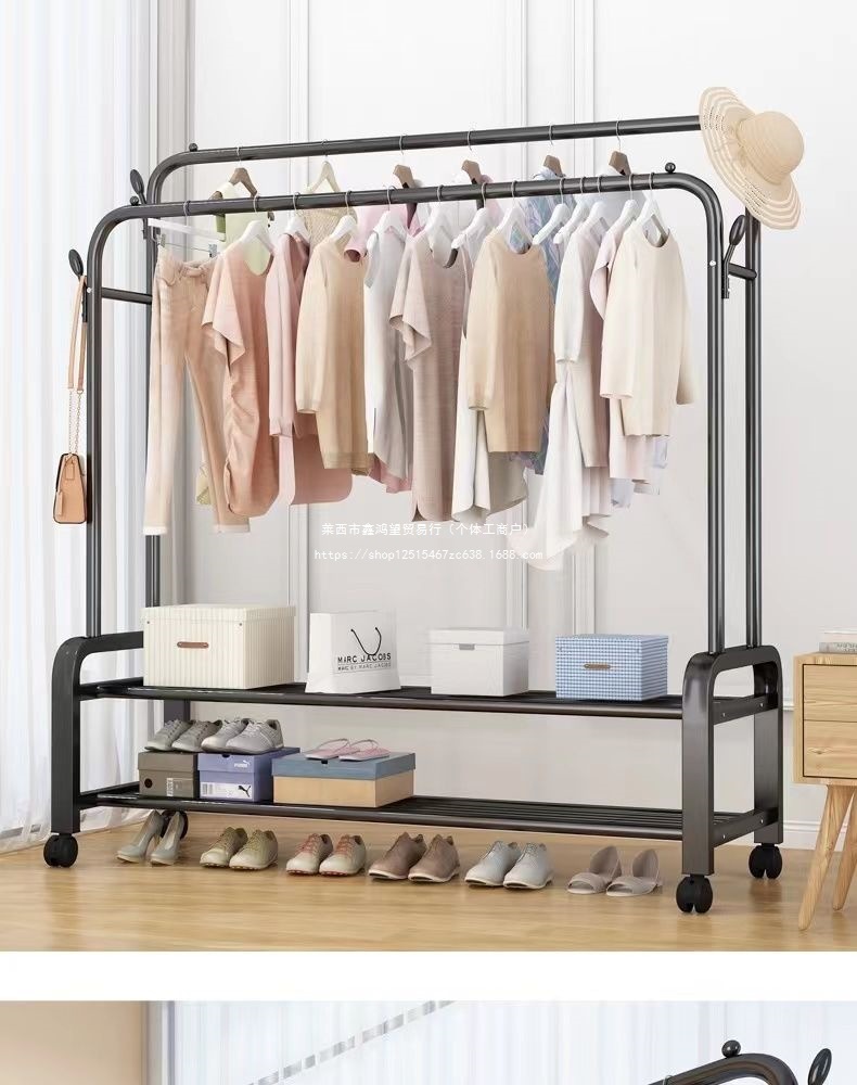 옷 옷걸이 바닥에 서있는 더블로드 옷 옷걸이 두꺼운 건조 랙 가정용 침실 코트 랙 다층 보관 랙