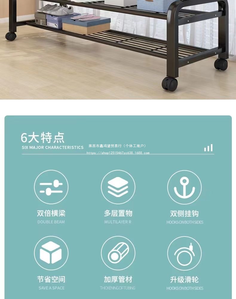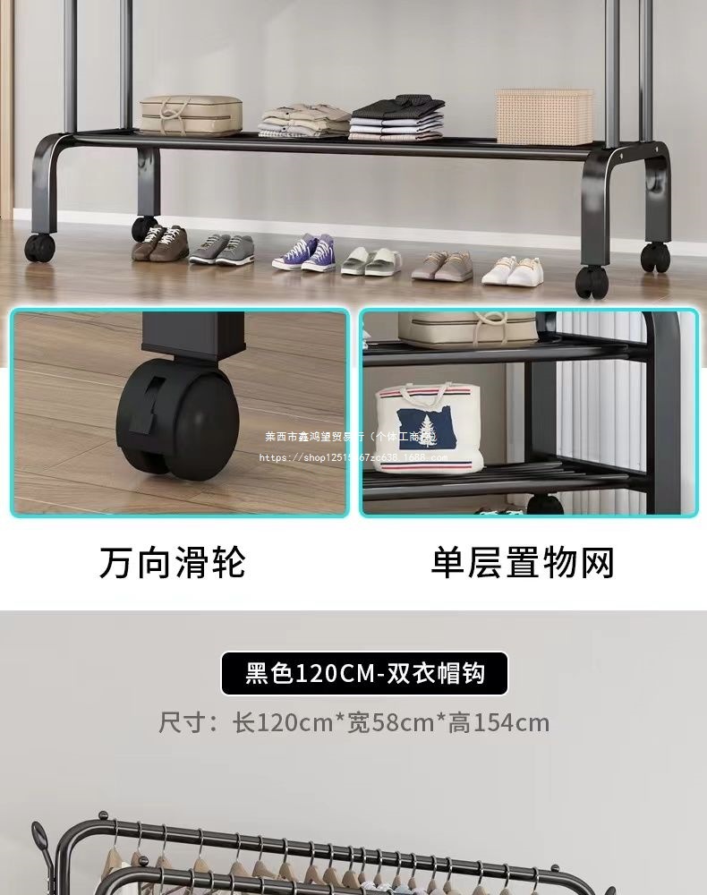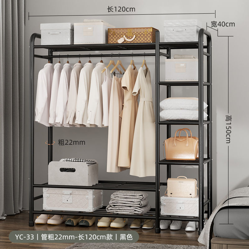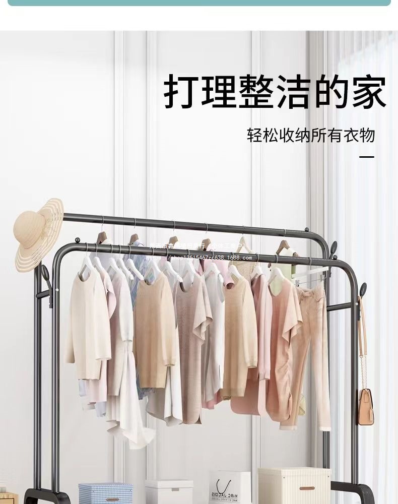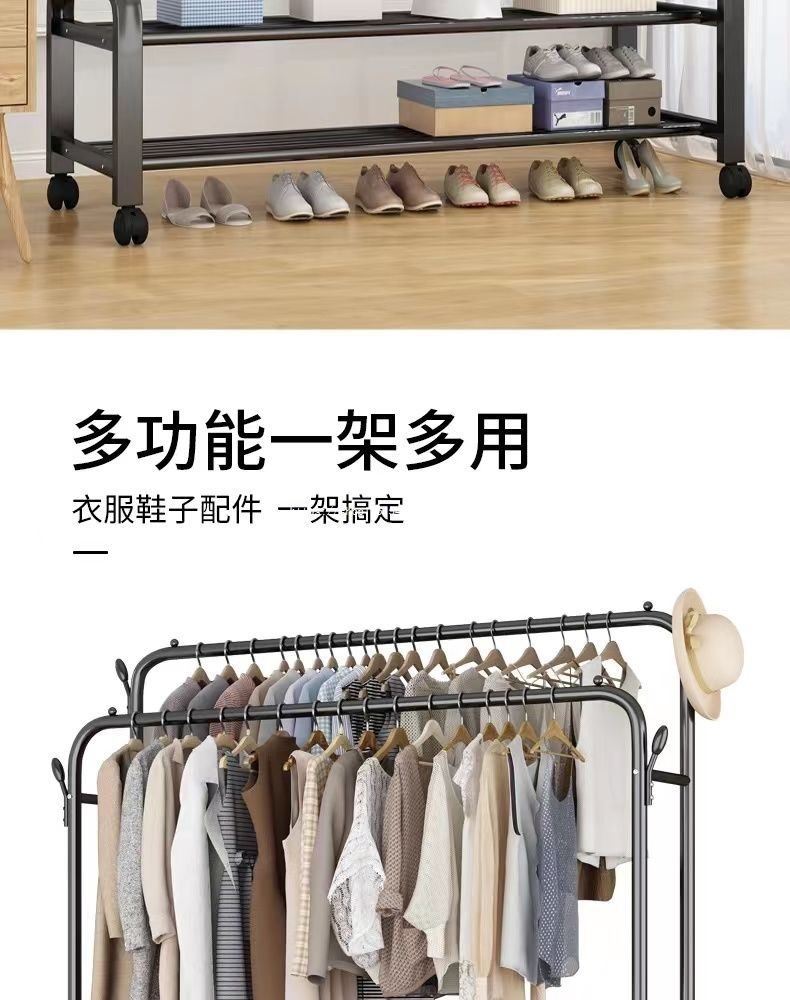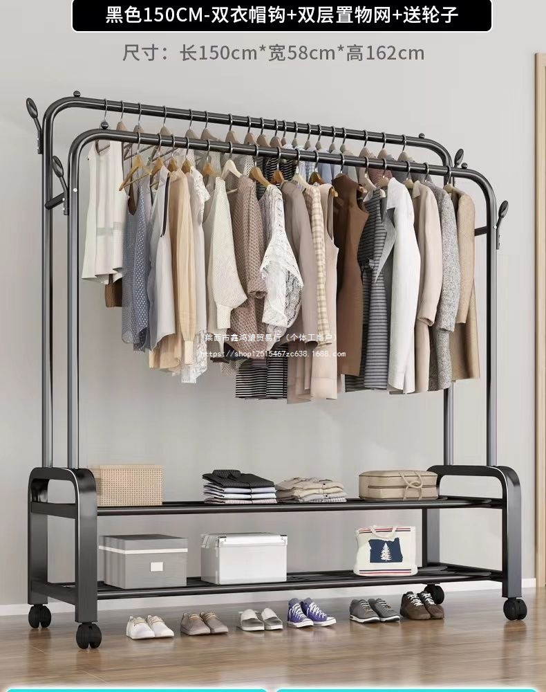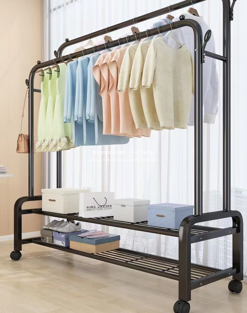 옷 옷걸이 바닥에 서있는 더블로드 옷 옷걸이 두꺼운 건조 랙 가정용 침실 코트 랙 다층 보관 랙