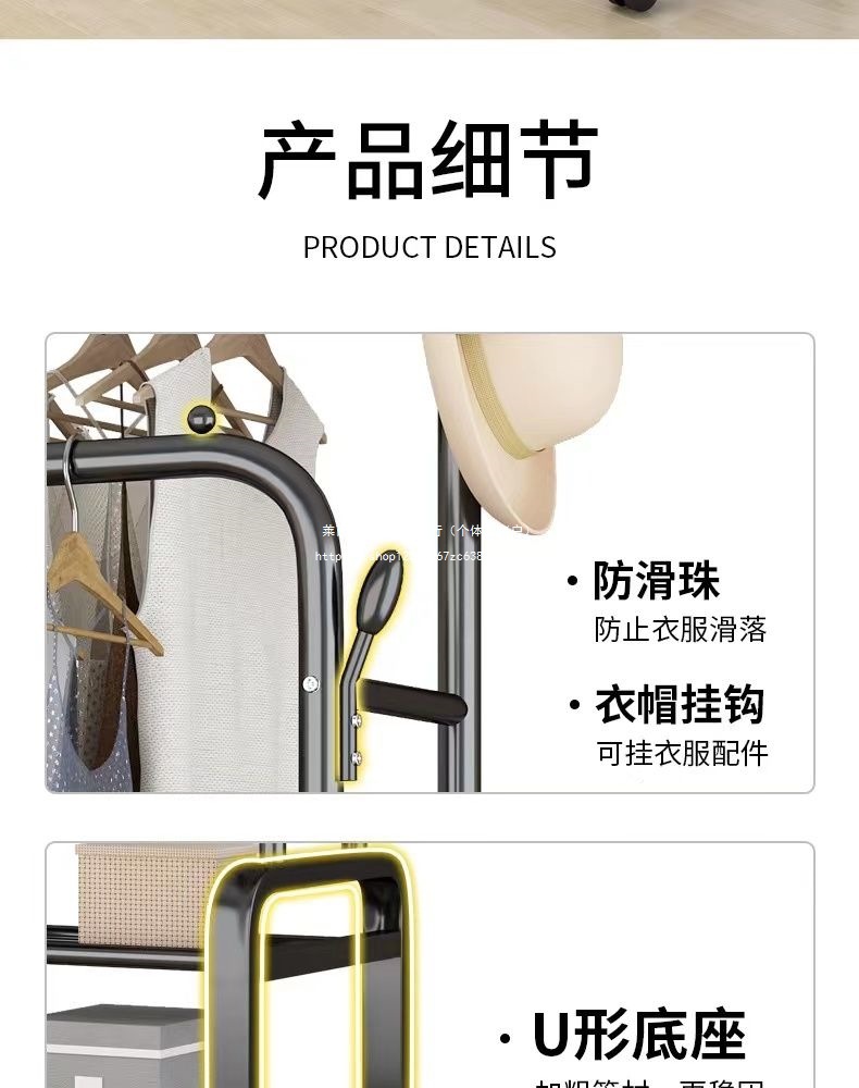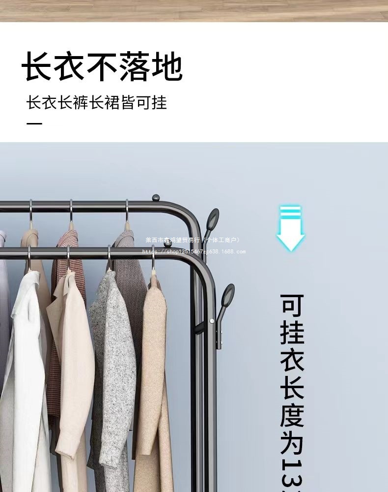 옷 옷걸이 바닥에 서있는 더블로드 옷 옷걸이 두꺼운 건조 랙 가정용 침실 코트 랙 다층 보관 랙스토어 가기