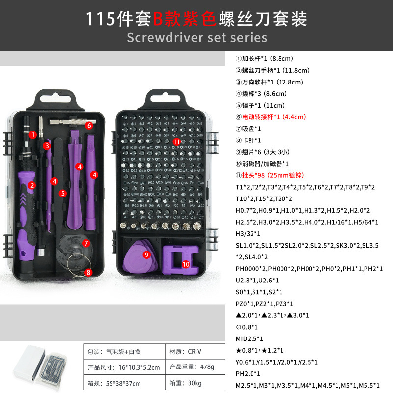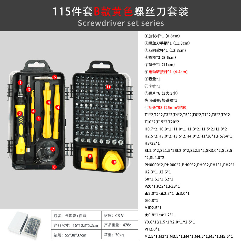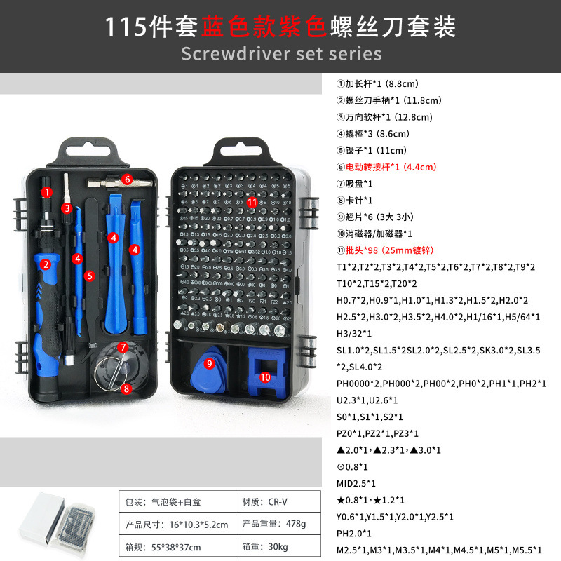 하나의 국경 시계 컴퓨터 휴대 전화 분해 유지 보수 하드웨어 도구 드라이버 조합 세트 제조업체 배치
