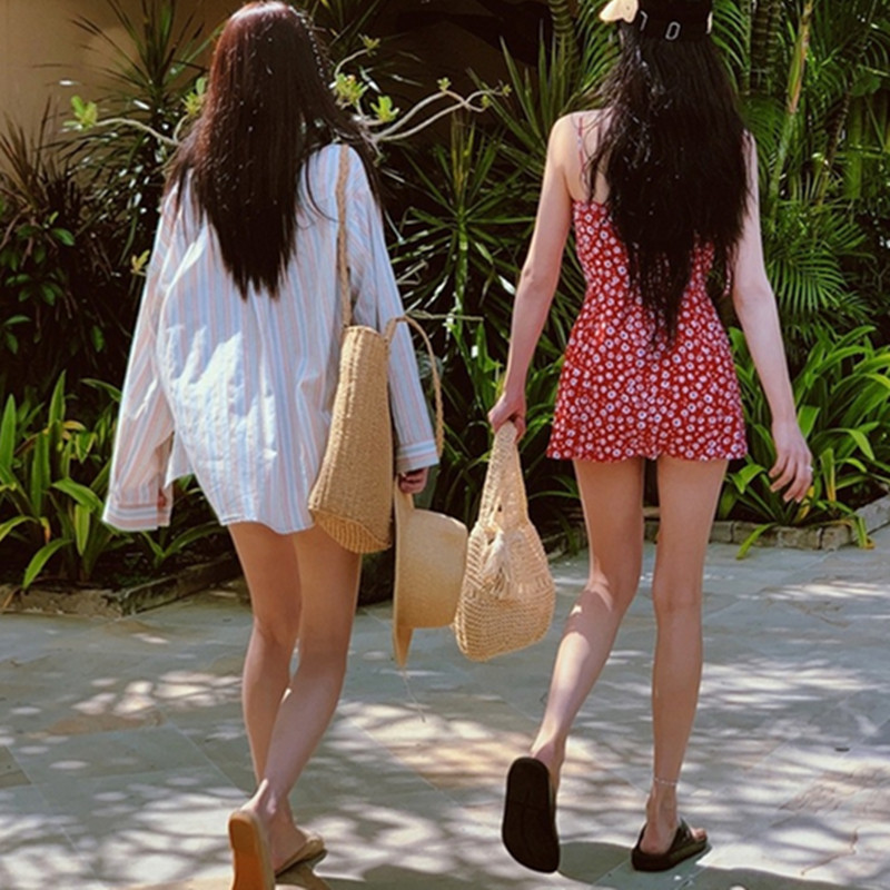 소스 공장 한국식 신음 스타일 슬링 꽃 원피스 수영복 여성의 가슴 곧게 펴진 허리 슬리밍 온천 수영복