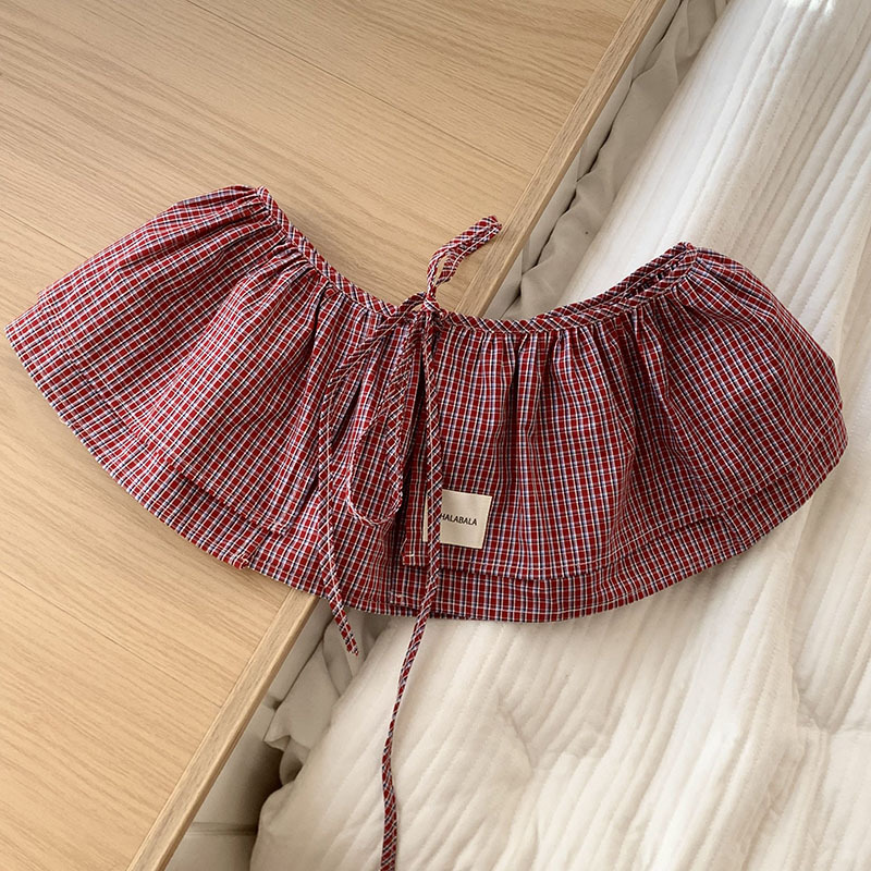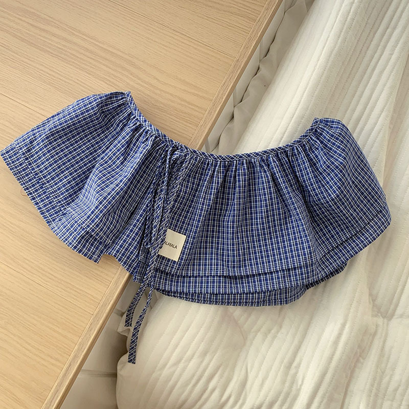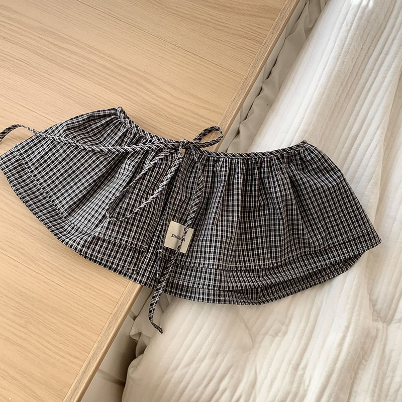 방귀 커튼 봄과 여름 새로운 하이 엔드 감각 청바지 레이스 스커트 조커 체크 무늬 방귀 커튼 접이식 앞치마 도매스토어 가기