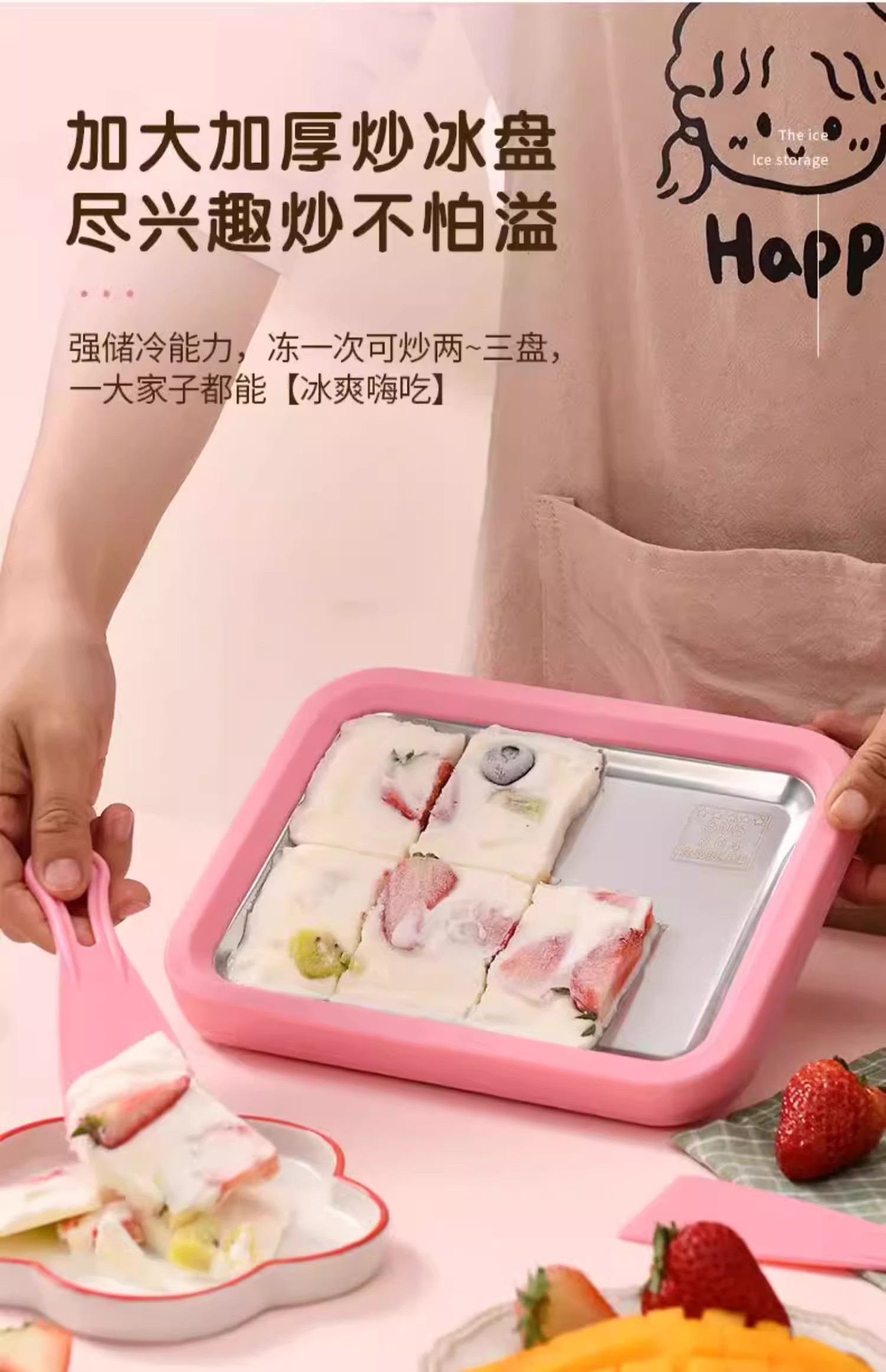 무료 플러그인 가정용 작은 얼음 튀긴 기계 튀김 신 우유 기계 304 스테인레스 스틸 어린이 수제 과일 튀김 아이스크림 기계스토어 가기
