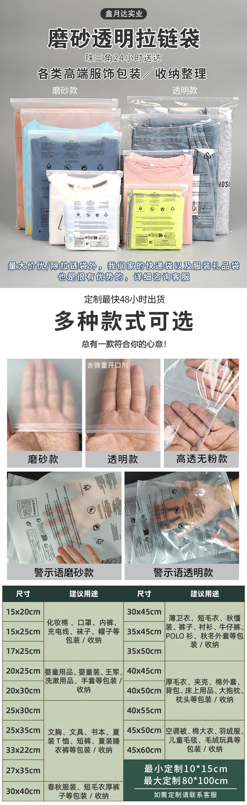 투명 지퍼백, 속옷/양말용 지퍼백, 도매 요가복/레깅스 의류 포장백, 맞춤 제작 가능
