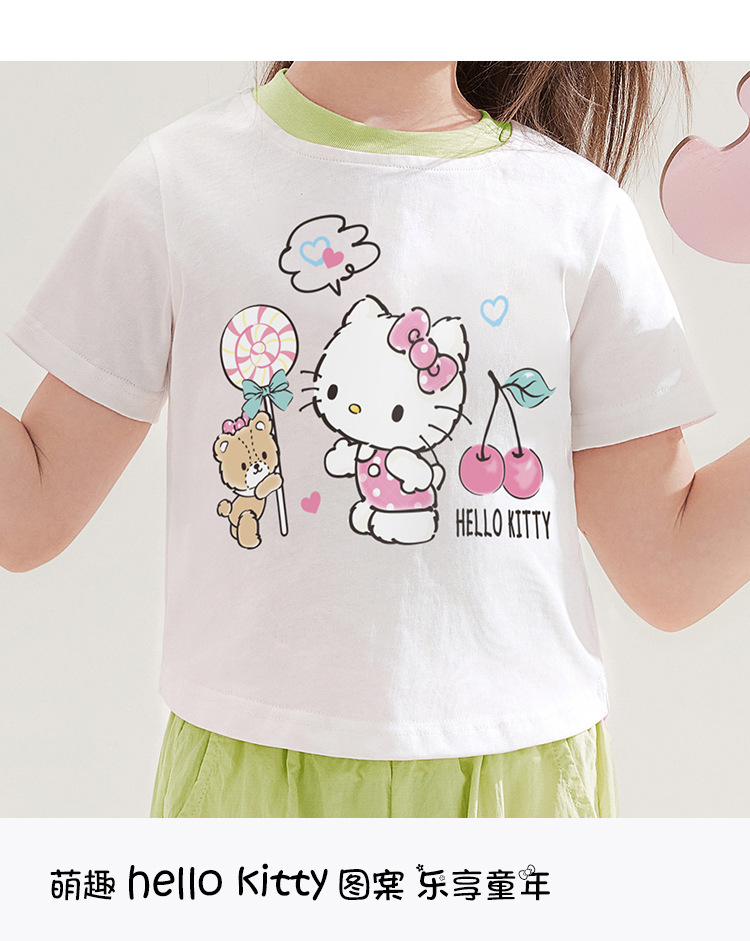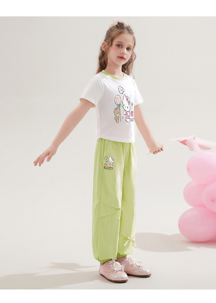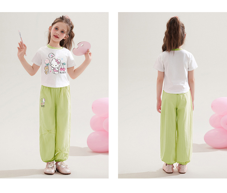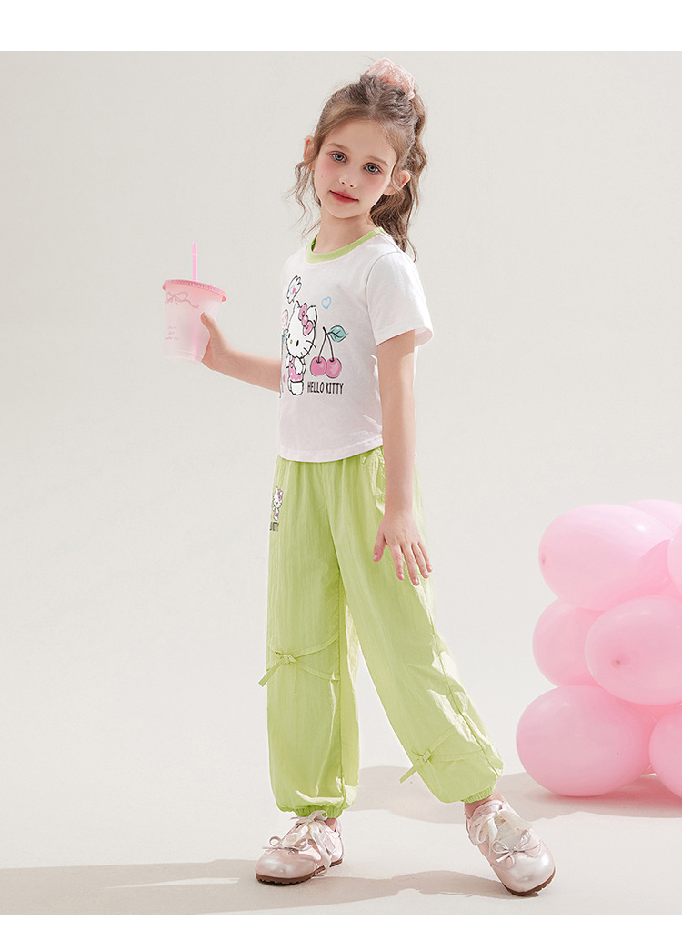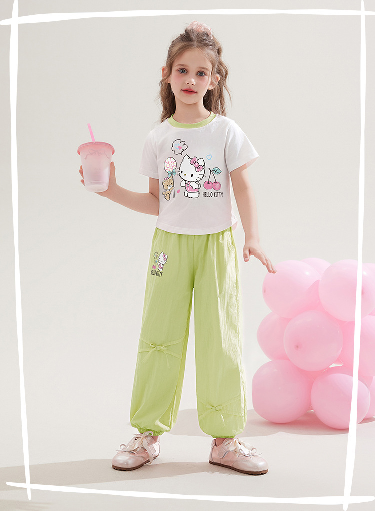소녀 100 면 반팔 탑 투피스 세트 2025 새로운 중형 및 대형 아동복 만화 달콤한 세트