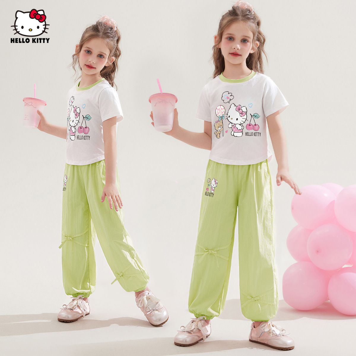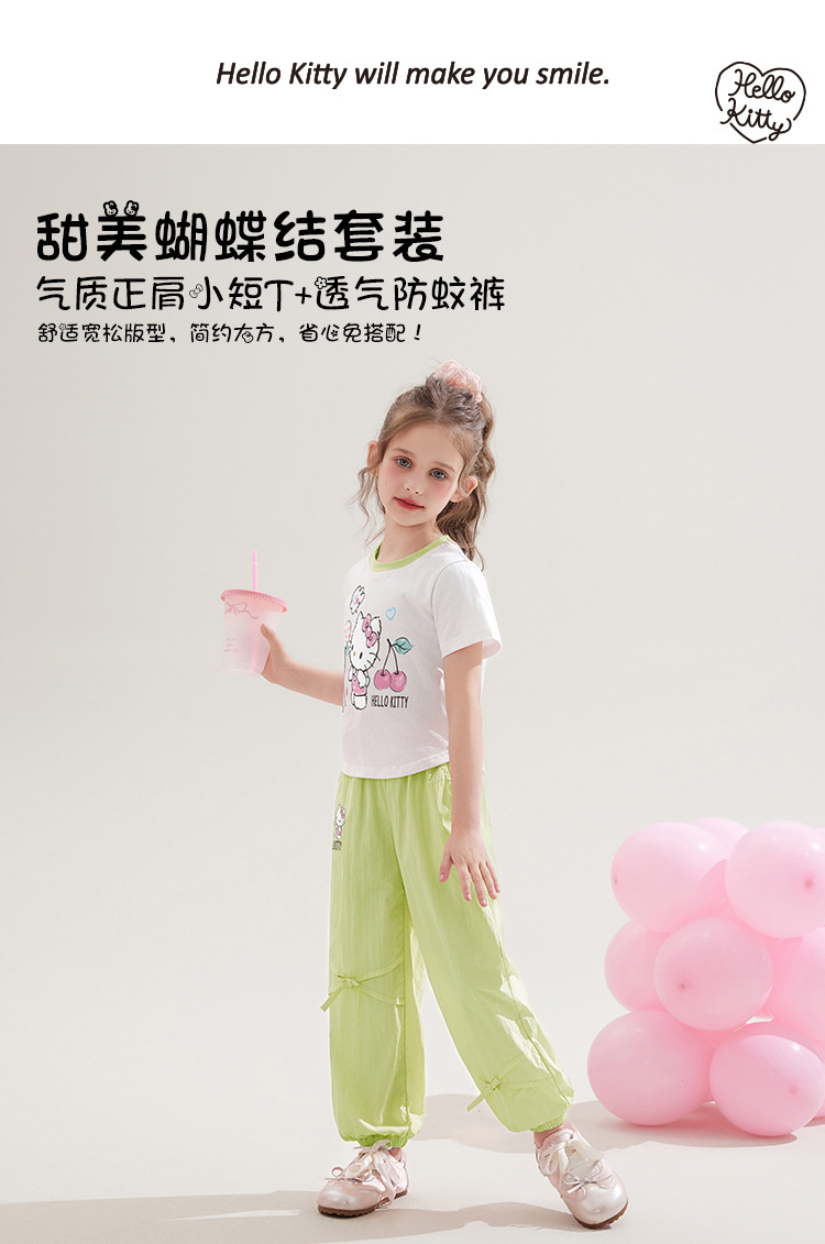 소녀 100 면 반팔 탑 투피스 세트 2025 새로운 중형 및 대형 아동복 만화 달콤한 세트스토어 가기