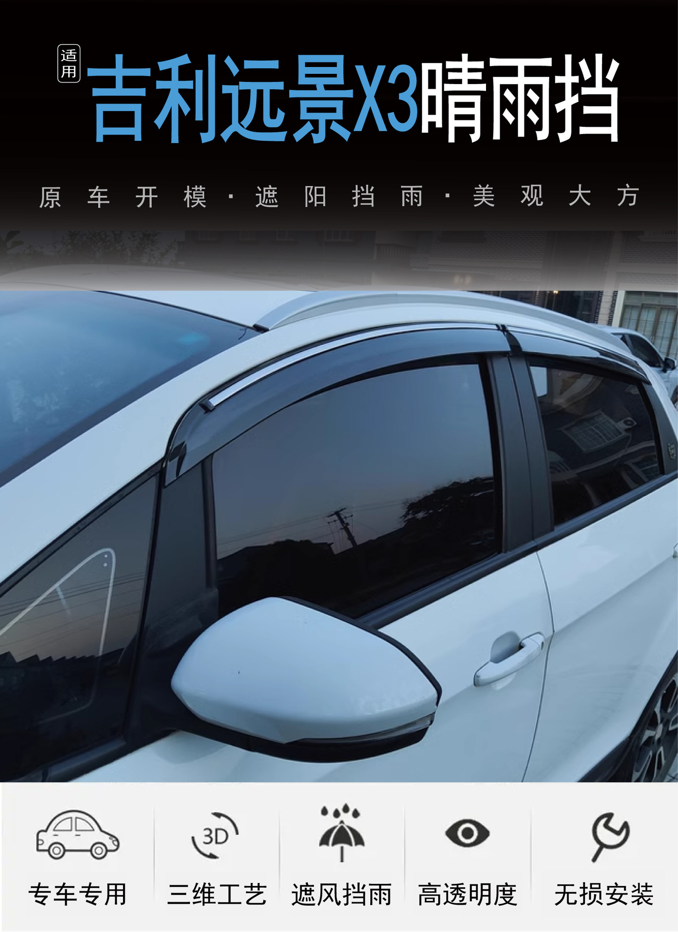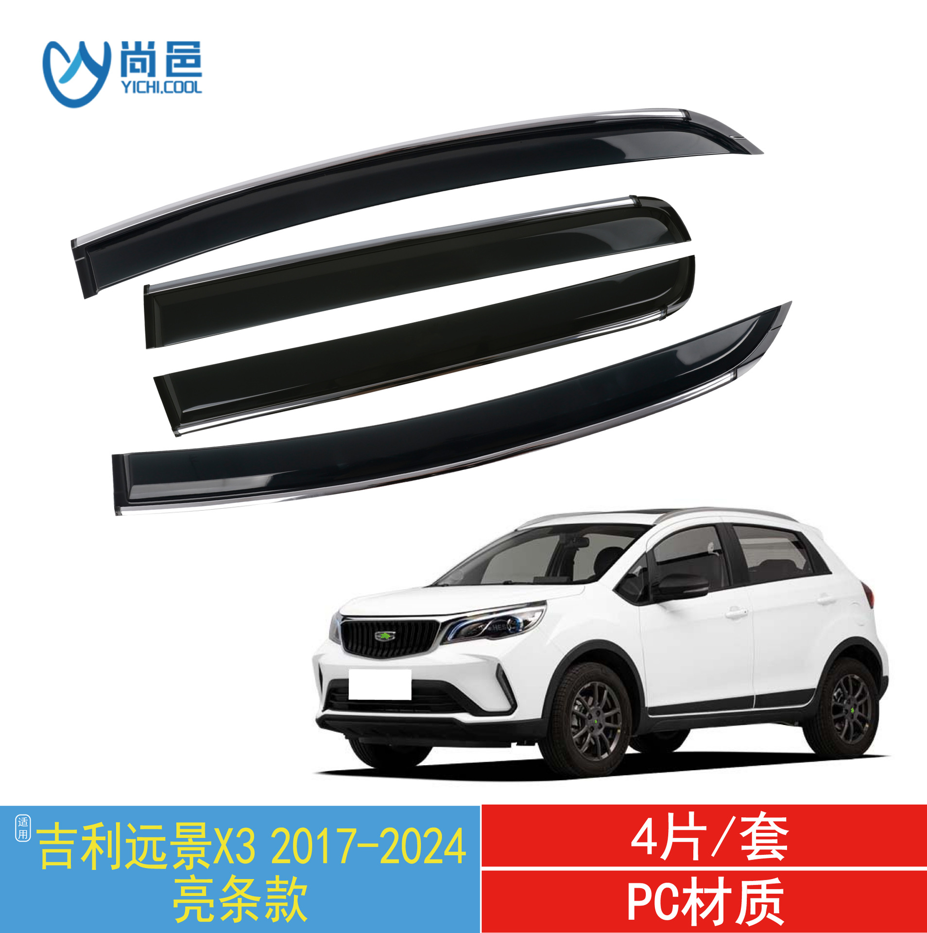 2017-2024 Geely Vision X3 창 차단 및 비 차단 4피스 자동차 비 차단용 국경 간 적용 가능스토어 가기