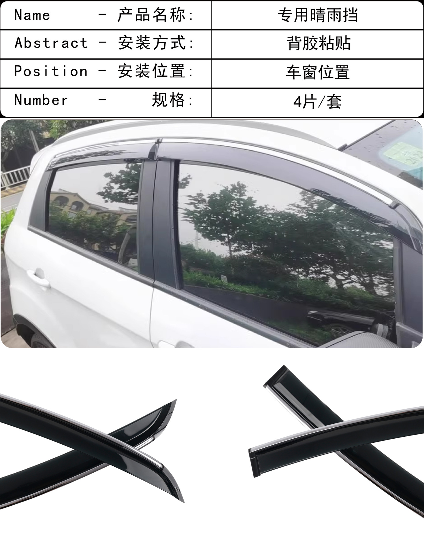 2017-2024 Geely Vision X3 창 차단 및 비 차단 4피스 자동차 비 차단용 국경 간 적용 가능
