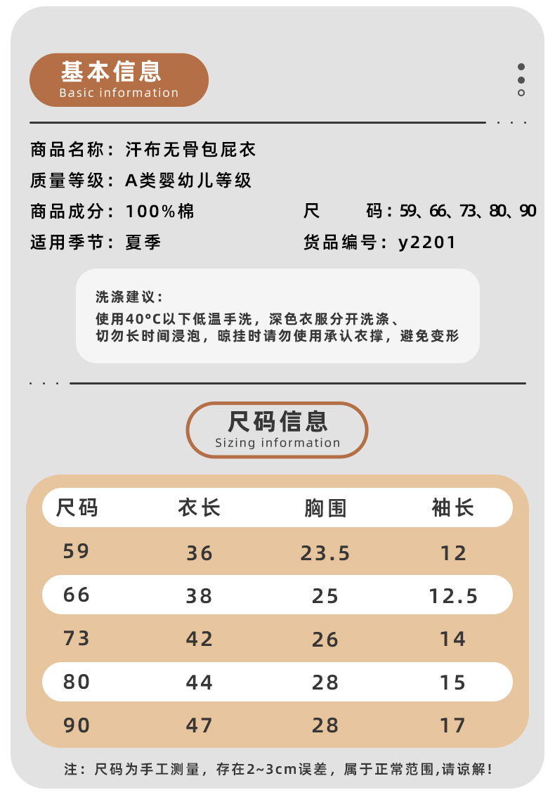 Y2201 아기면 랩 가방옷 아기 여름 반팔 삼각 결합 하일리 안양 어린이 의류 클래스 A 신생아