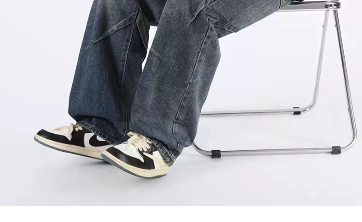 바느질 청바지 남자의 가을과 겨울 넓은 다리 다발 느슨한 스트레이트 바지 틈새 디자인 미국 스타일 하이 스트리트 바지스토어 가기