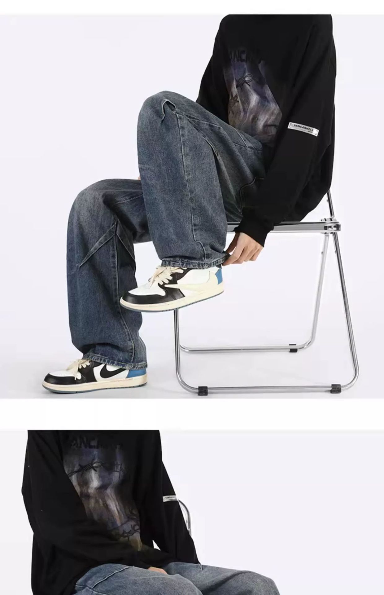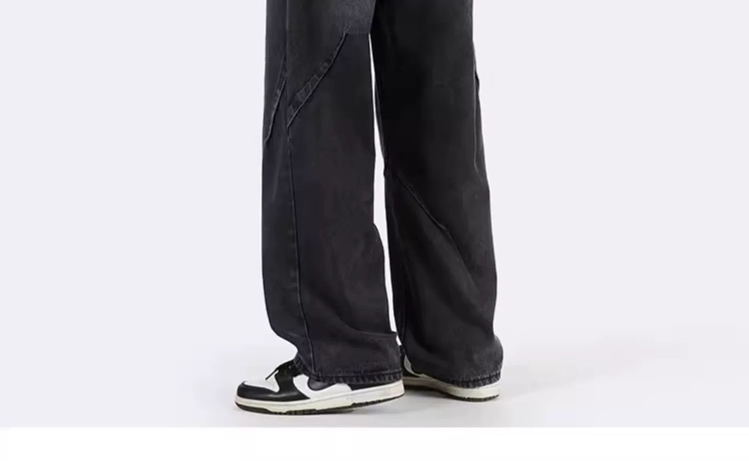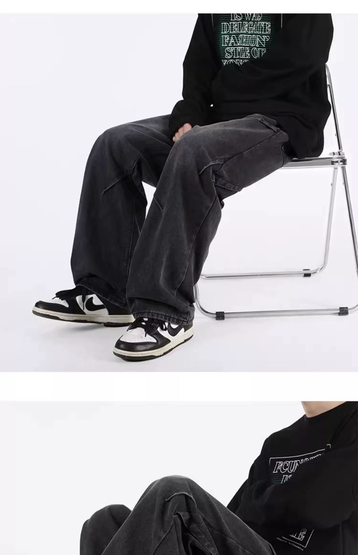 바느질 청바지 남자의 가을과 겨울 넓은 다리 다발 느슨한 스트레이트 바지 틈새 디자인 미국 스타일 하이 스트리트 바지
