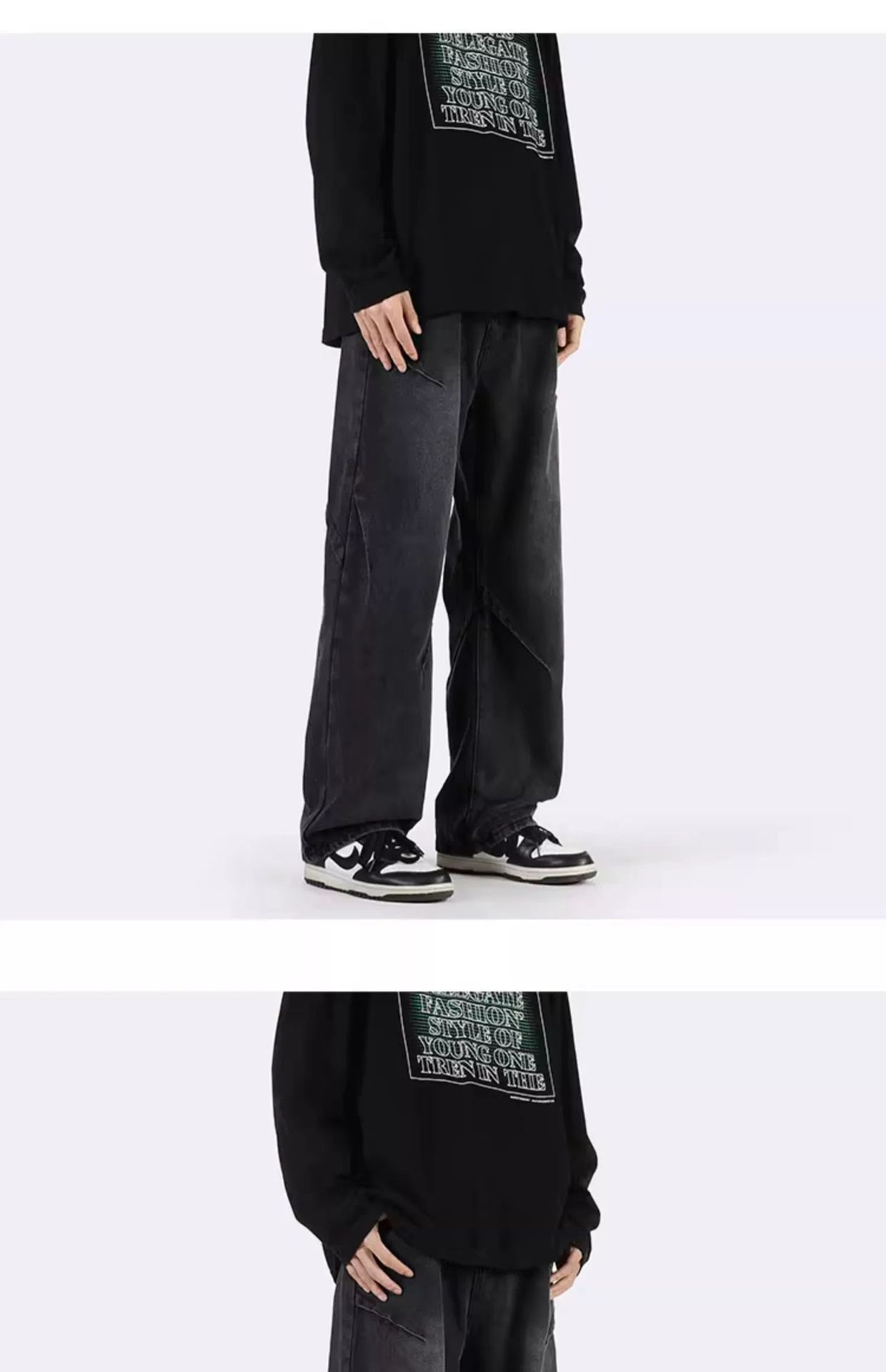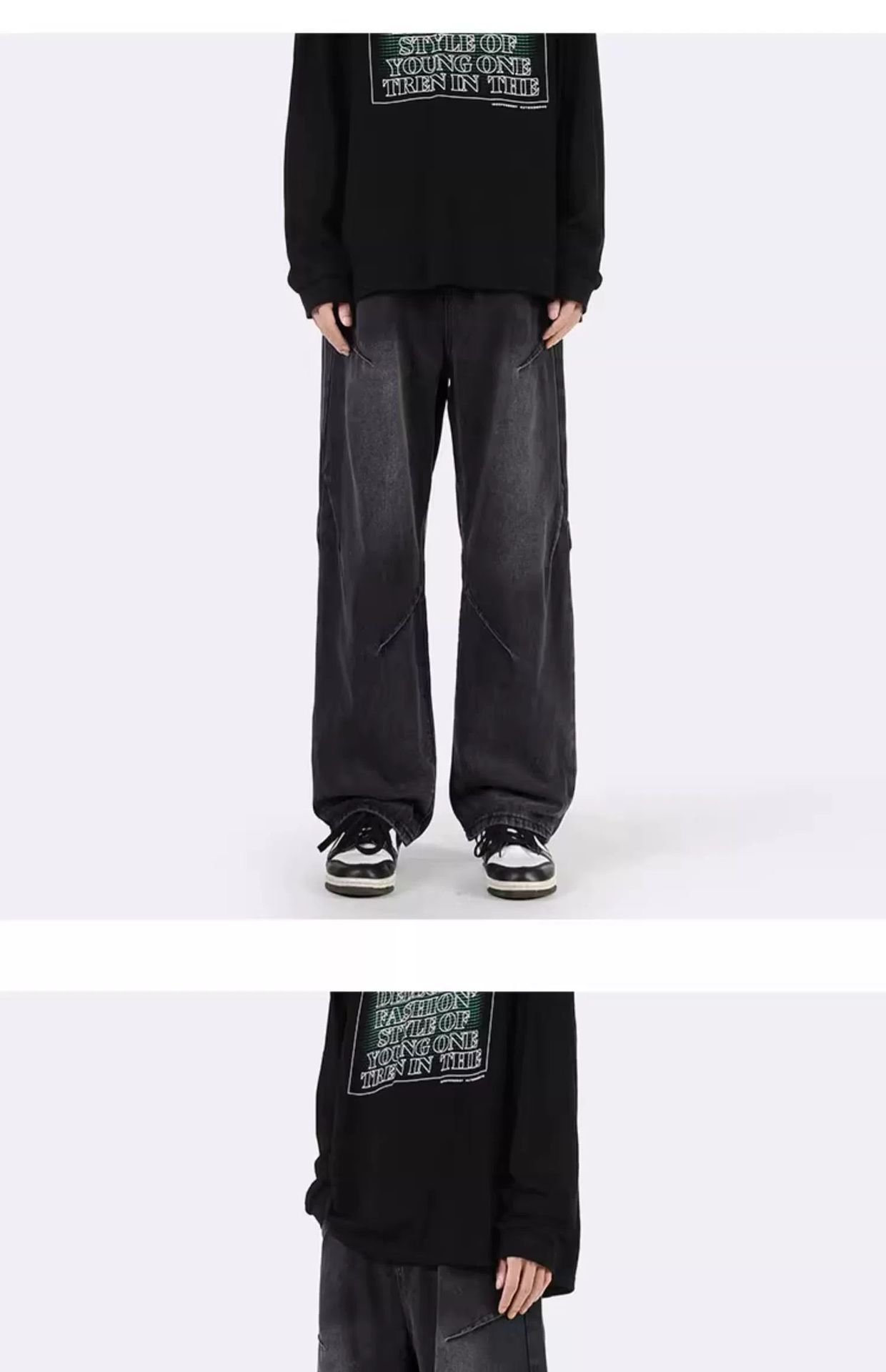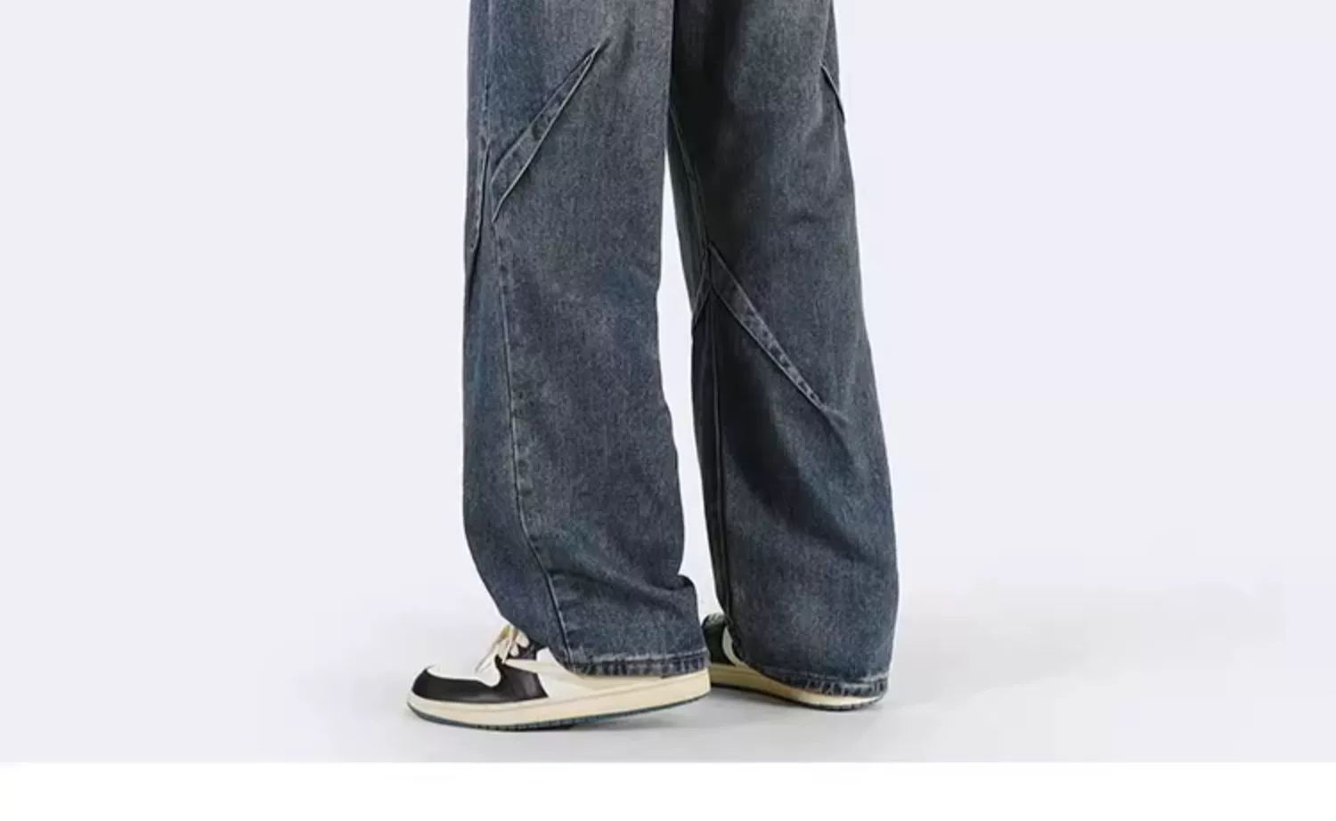 바느질 청바지 남자의 가을과 겨울 넓은 다리 다발 느슨한 스트레이트 바지 틈새 디자인 미국 스타일 하이 스트리트 바지