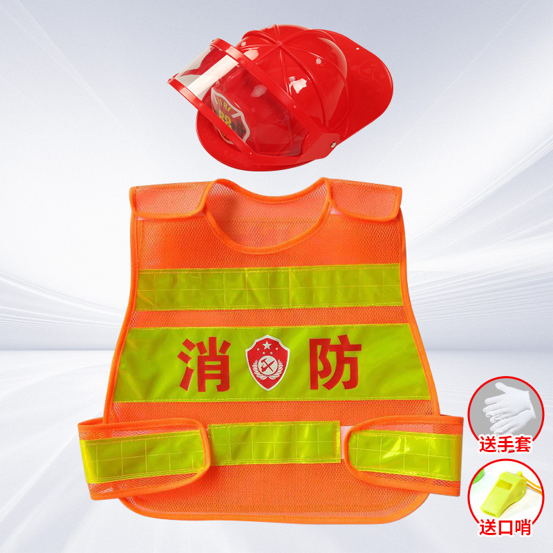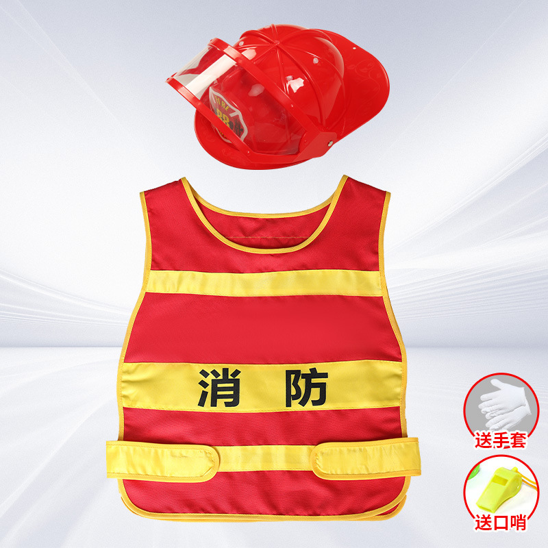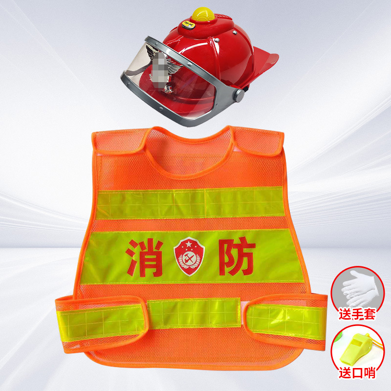 • 눈 보호 소방 모자 + 조끼에는 장갑과 호루라기가 함께 제공됩니다.
