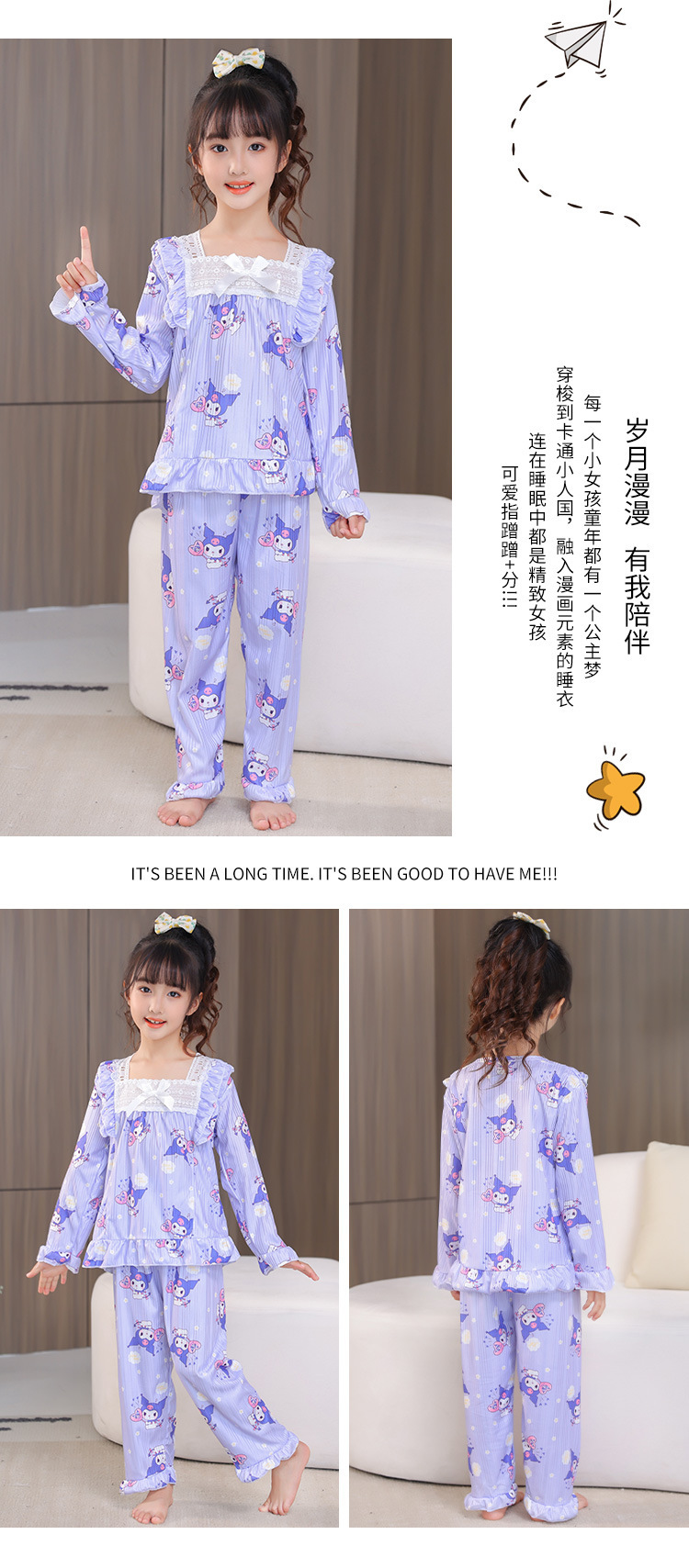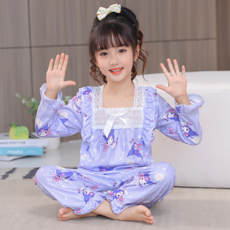 봄과 가을 어린이 잠옷 긴팔 만화 공주 스타일 소녀 어린이 아기 중대형 어린이 에어컨 가정 의류 세트스토어 가기