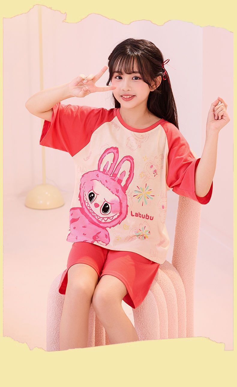 여름용 여아 잠옷, 얇고 통기성이 뛰어난 빗질면 반팔, 중대형 아동용 남아용 에어컨 가정복, 야외에서 착용 가능