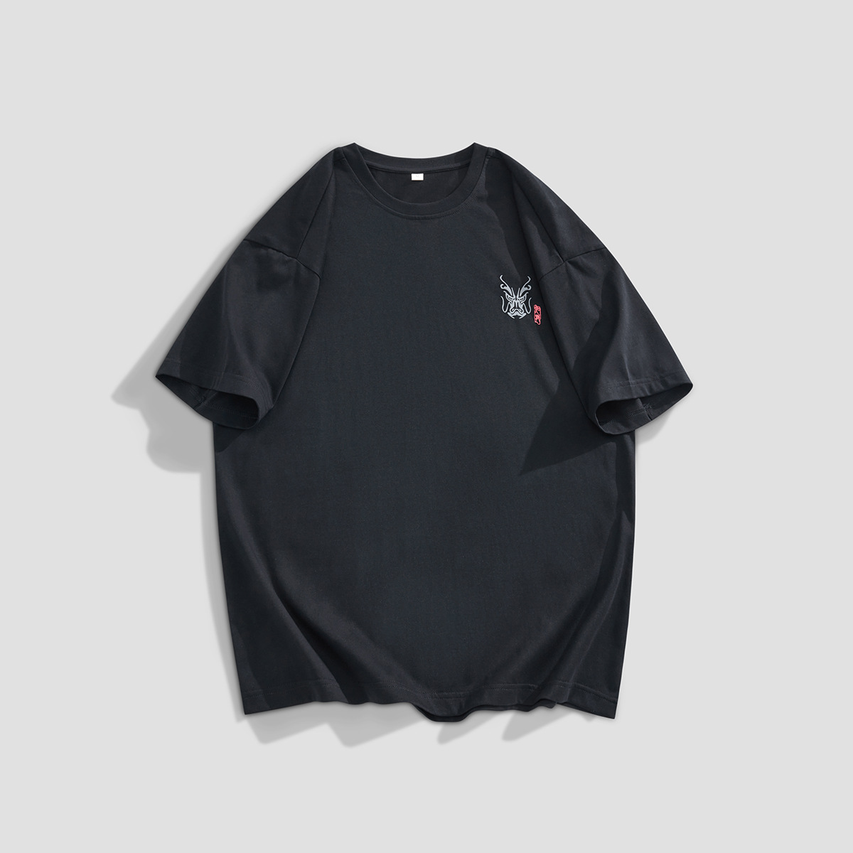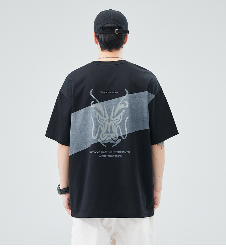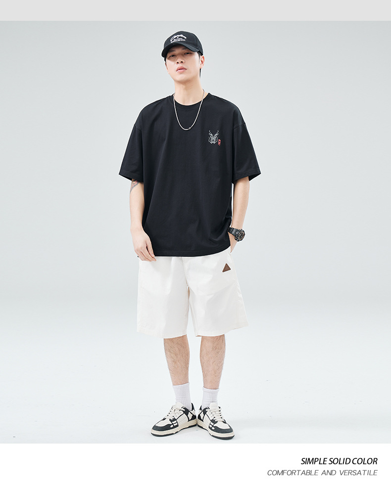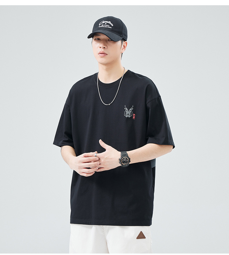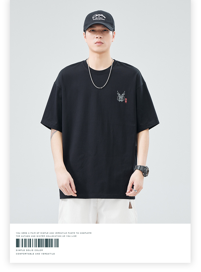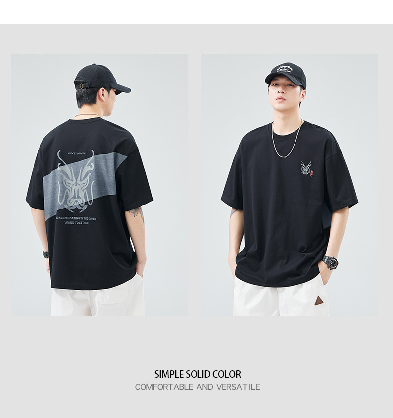 여름 블랙 티셔츠 남성용 반팔 라운드 넥 헤비 루즈 캐주얼 신강 코튼 미국식 하이 스트리트 틴 탑