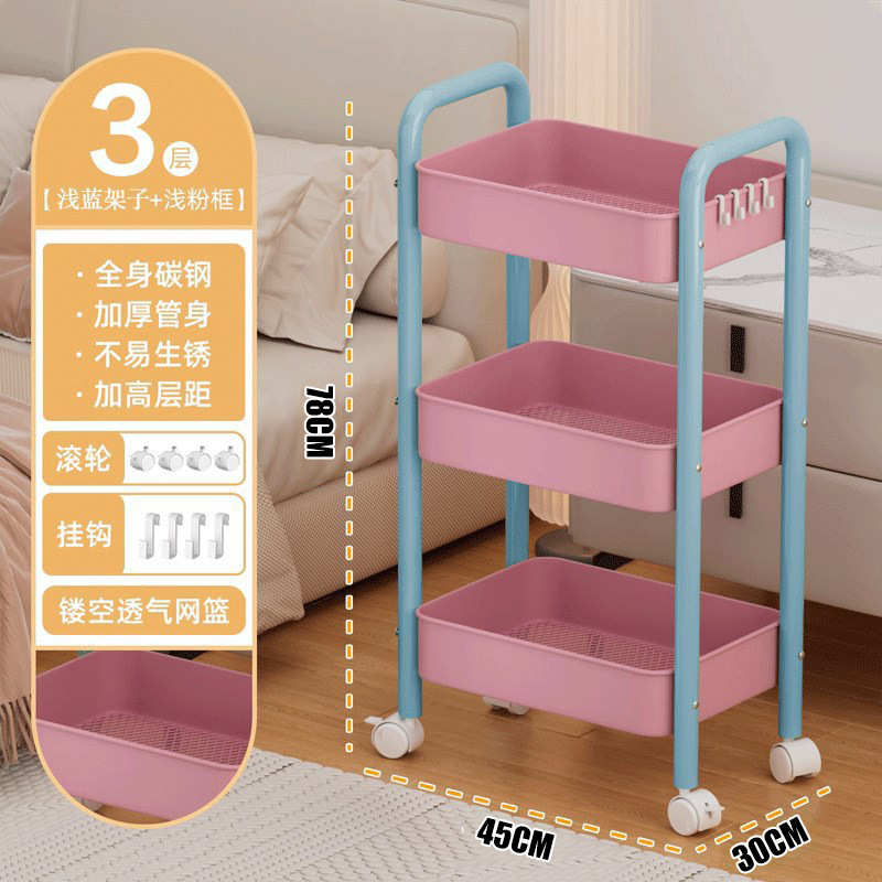 이동식 마카롱 컬러 수납 선반 트롤리 책장 바닥 스낵 및 잡화 이동식 프레임 수납 선반