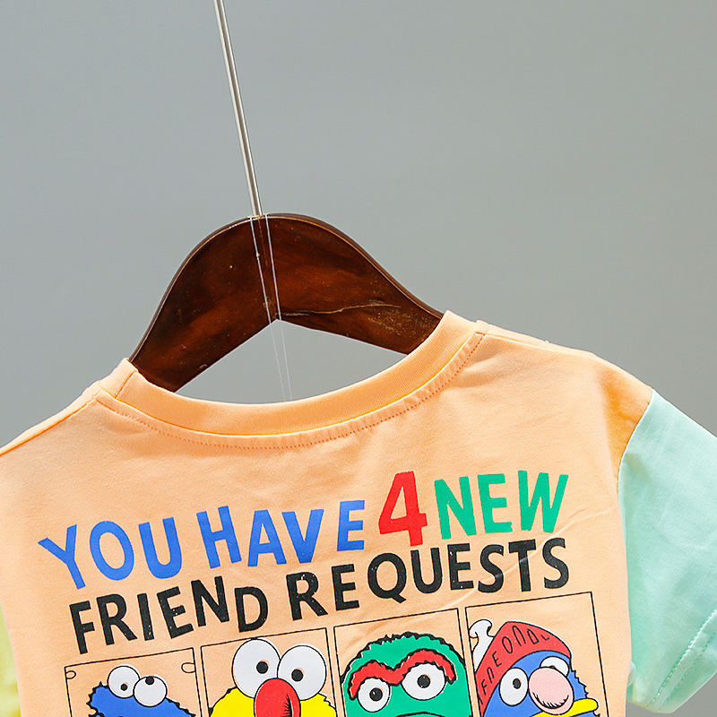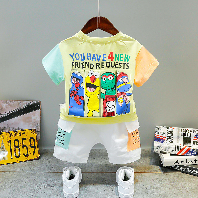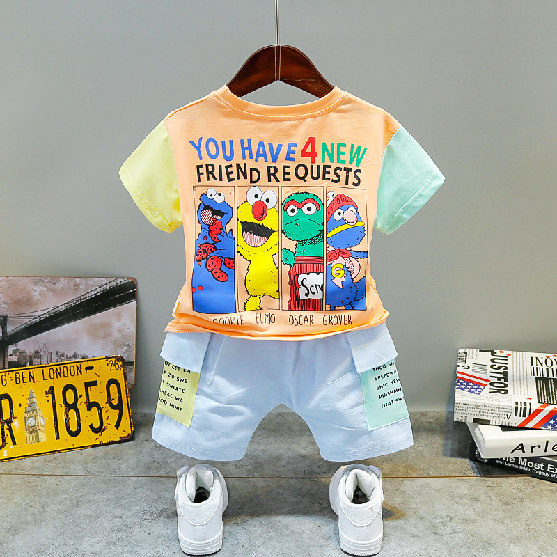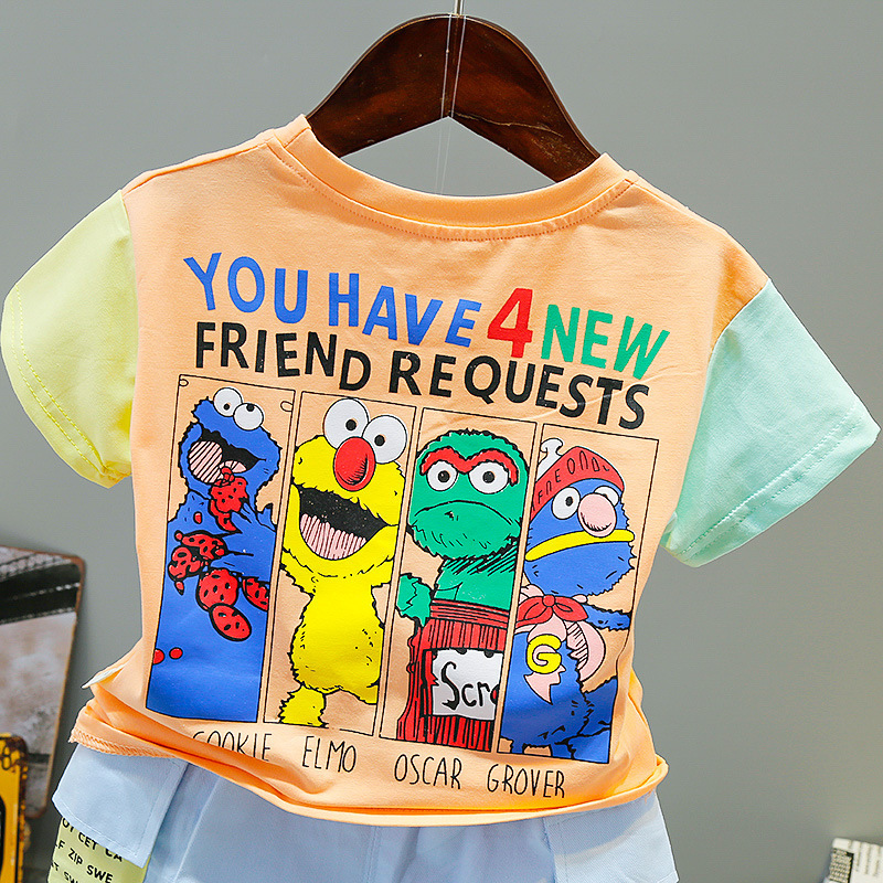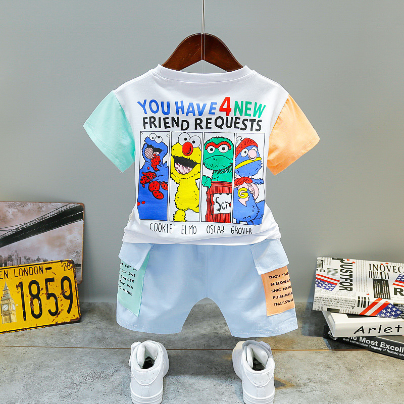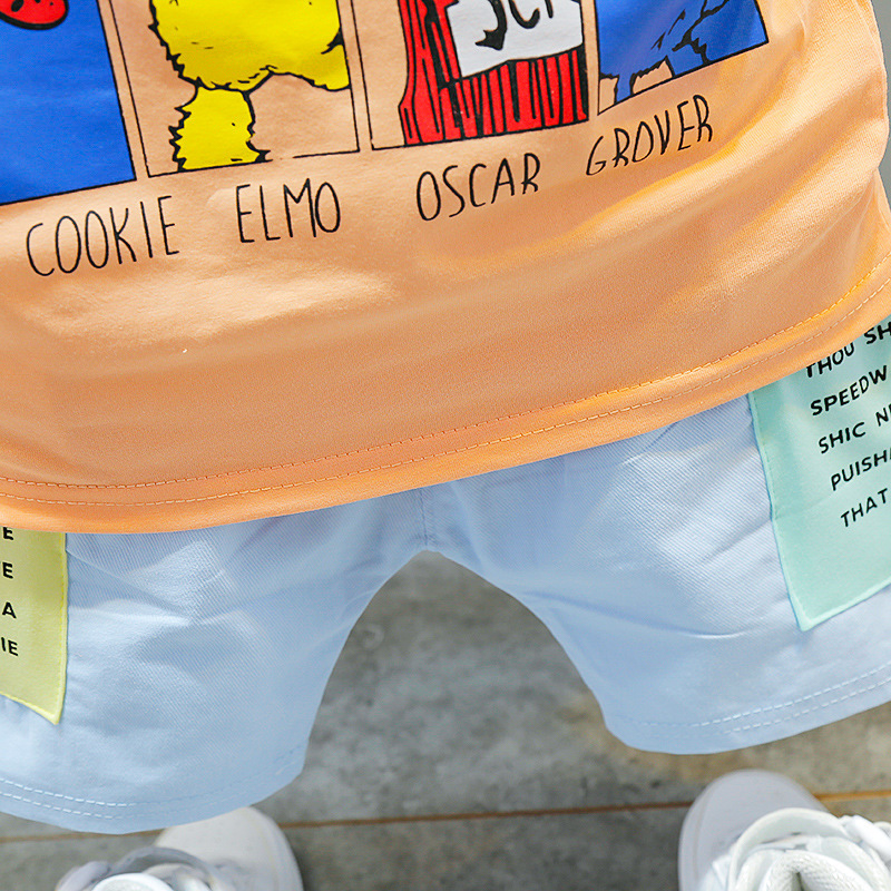 아동 의류 드롭 배송 여름 새로운 스타일 만화 세서미 스트리트 티셔츠 어린이 베이비 반바지 정장 투피스 세트스토어 가기