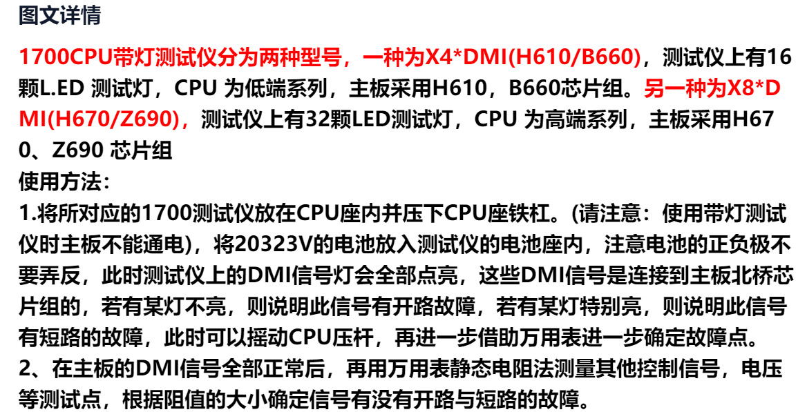 LGA1700 CPU 램프 테스터 테스트 시트 마더보드 수리 가짜 부하 컴퓨터 감지 도구스토어 가기