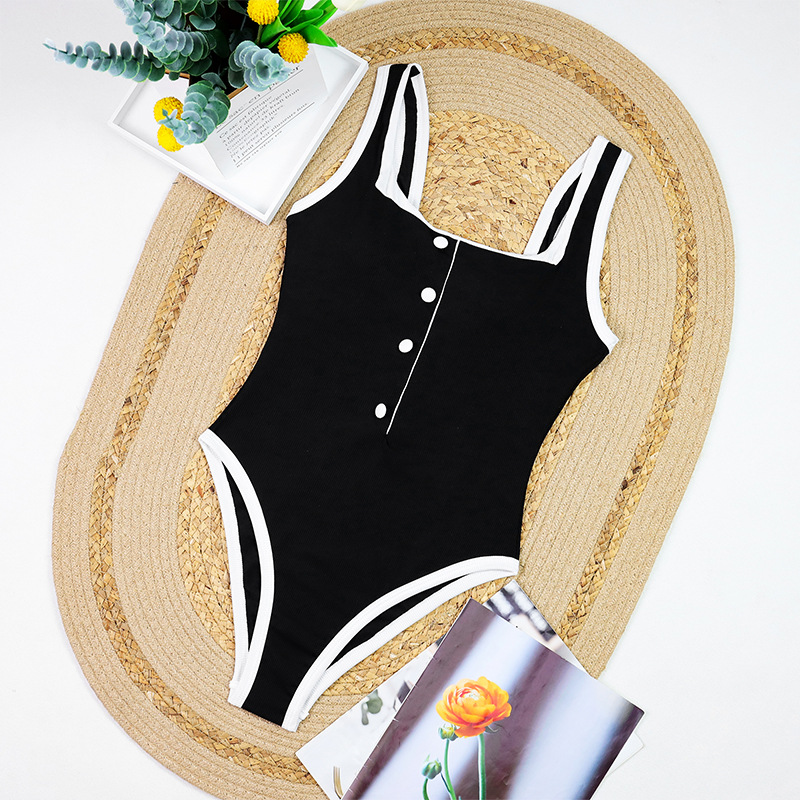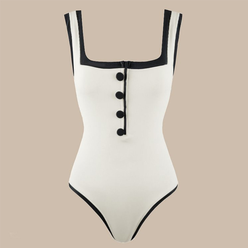 유럽과 미국의 수영복 2025 새로운 스퀘어 칼라 원피스 비키니 섹시한 여자 온천 휴가 수영 세트 흑백 색상 일치