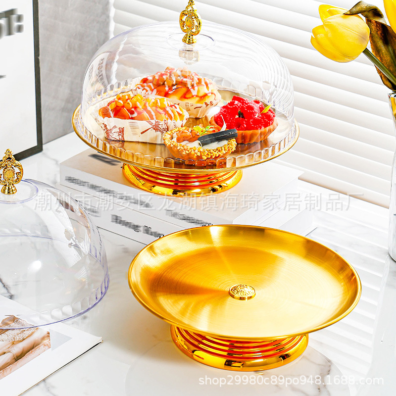 스테인레스 스틸 케이크 플레이트 뚜껑 방진 디저트 말린 과일 플레이트 시음 플레이트 연회 디스펜션 플레이트 라이트 럭셔리 트레이