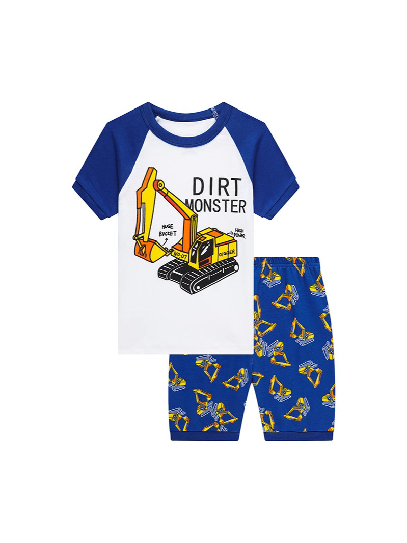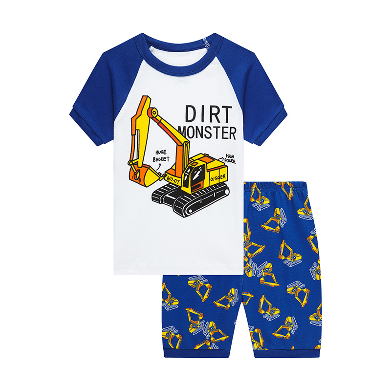 유럽과 미국의 아동복 가정 의류 파자마 만화 굴삭기 소년 반바지 세대 헤어 세트스토어 가기