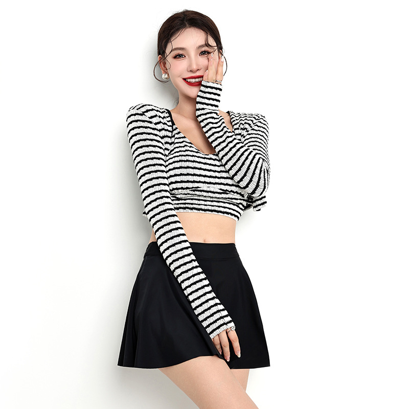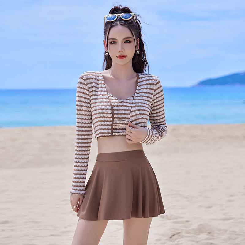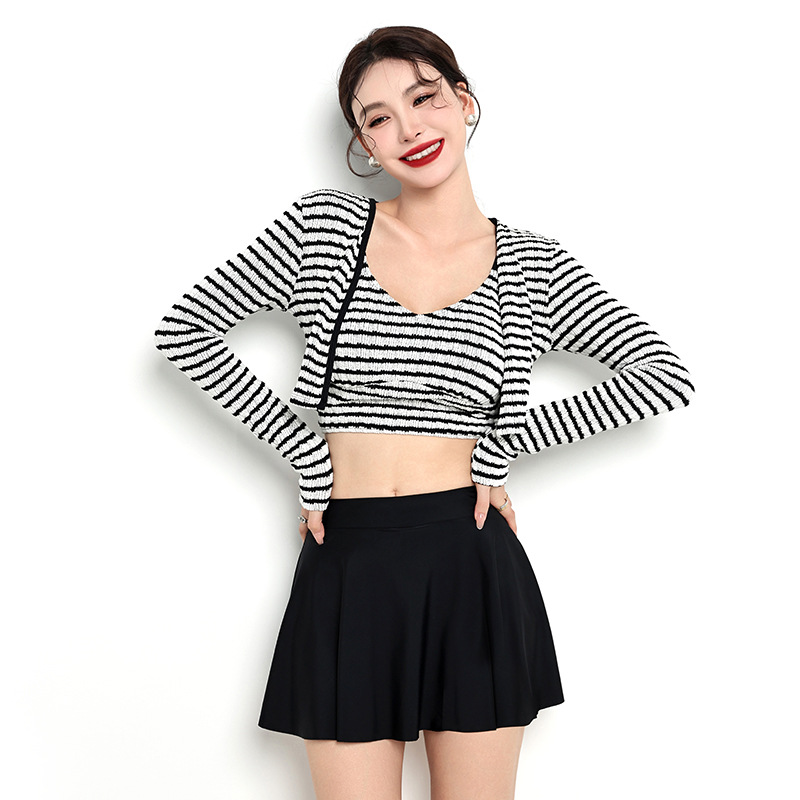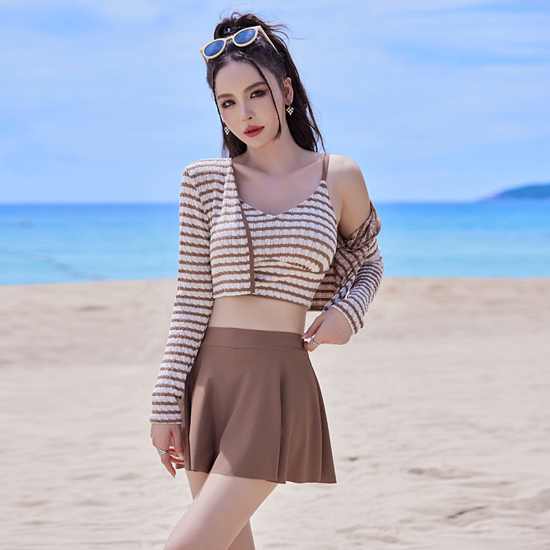 2024 새로운 수영복 여성용 스플릿 3 피스 세트 복부 슬리밍 수집 작은 가슴 한국 온천스토어 가기
