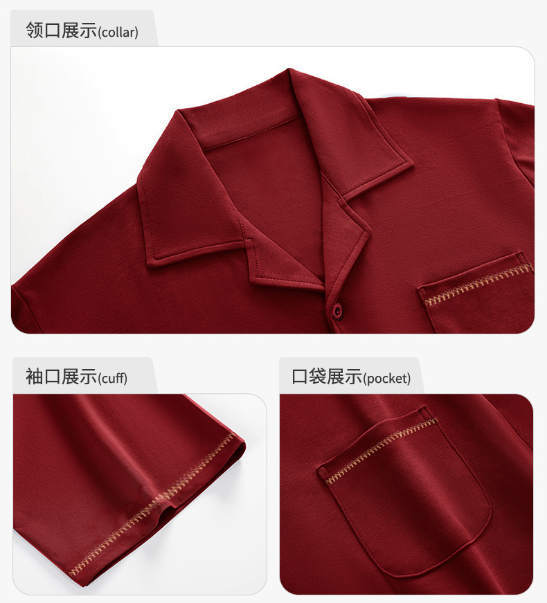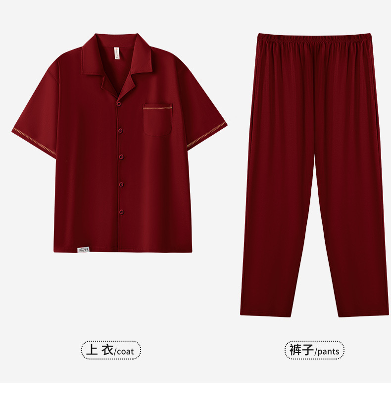 커플 잠옷 여름 반팔 바지 순수 코튼 레드 웨딩 신혼 홈웨어 세트 플러스 사이즈 남성과 여성