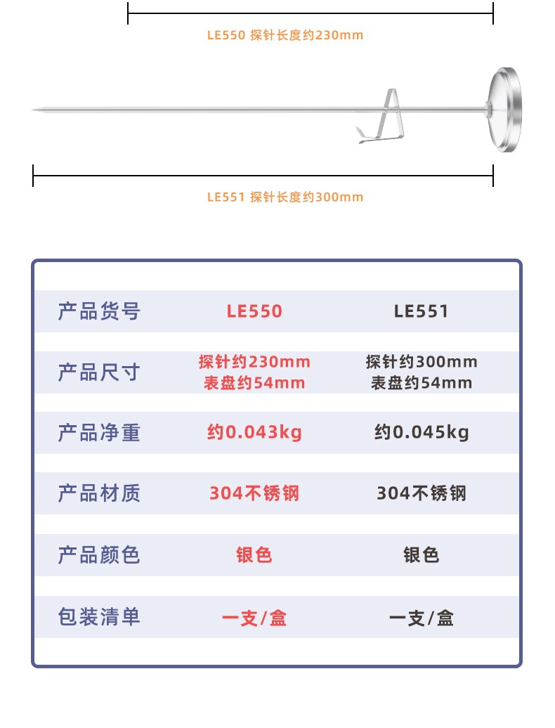 델리 오일 온도계 상업용 식품 온도계 주방 오일 온도 측정 식품 베이킹 및 튀김 온도계 LE550