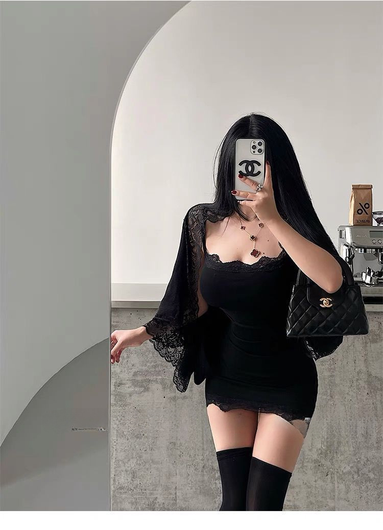 스파이스 걸스 순수한 욕망 서스펜더 스커트 배틀 가운 원피스 배틀 가운 슬림 핏 타이트 레이스 외부 스커트 슬림 아메리칸 스타일