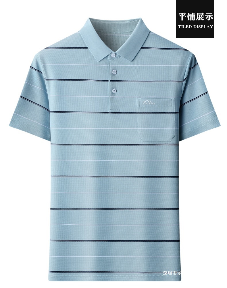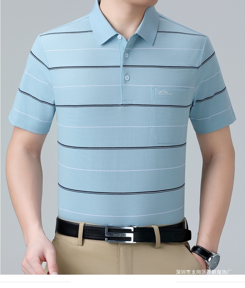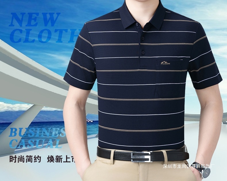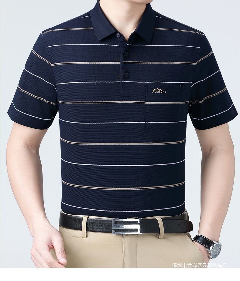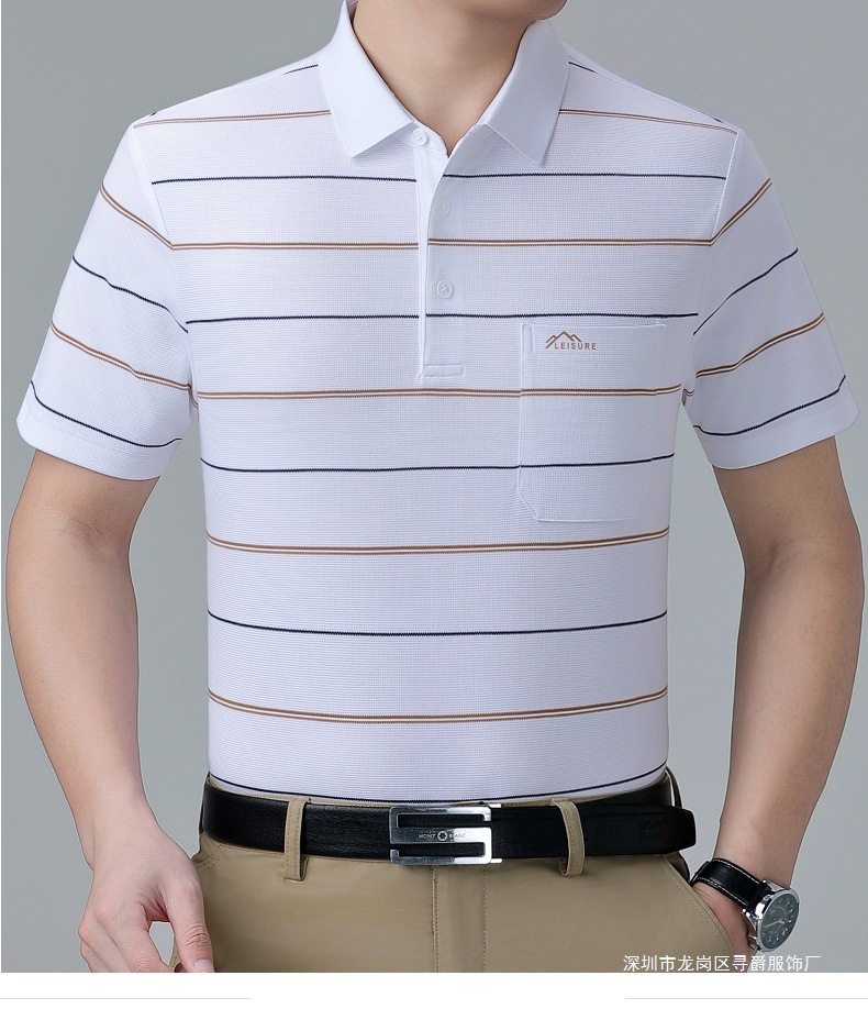여름 남자 뽕나무 실크 반팔 티셔츠 새로운 중년 아빠 옷깃 줄무늬 폴로 셔츠 캐주얼 얇은 탑스토어 가기