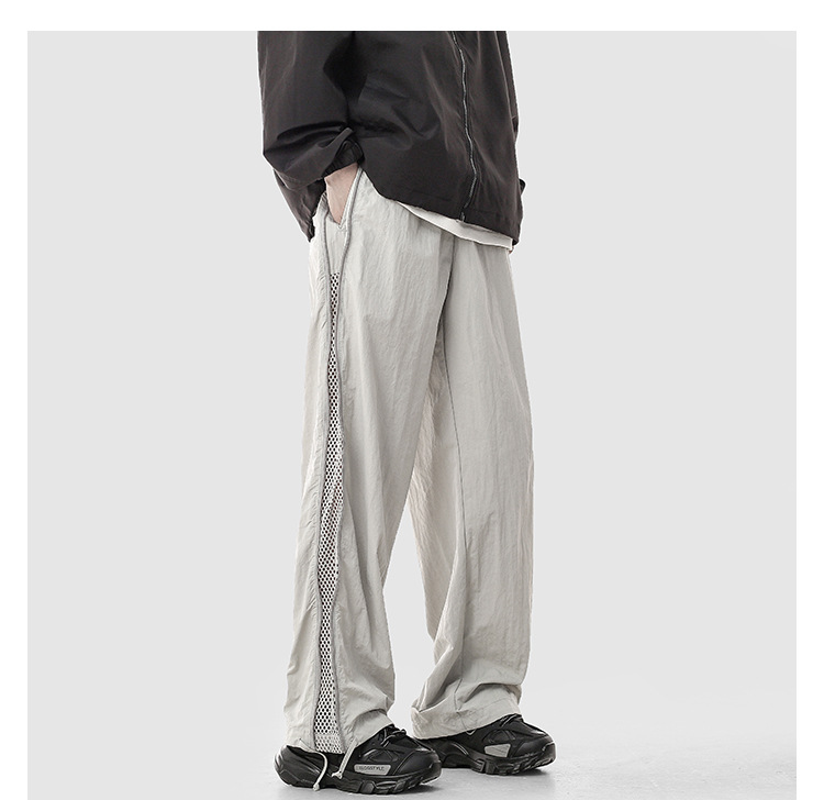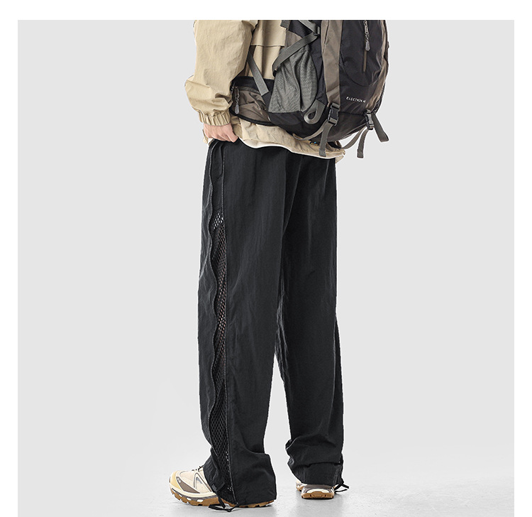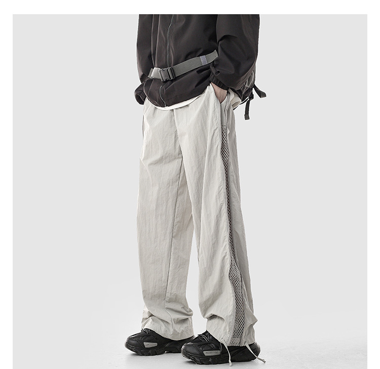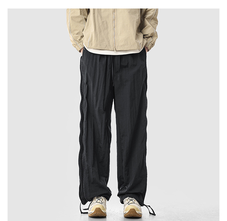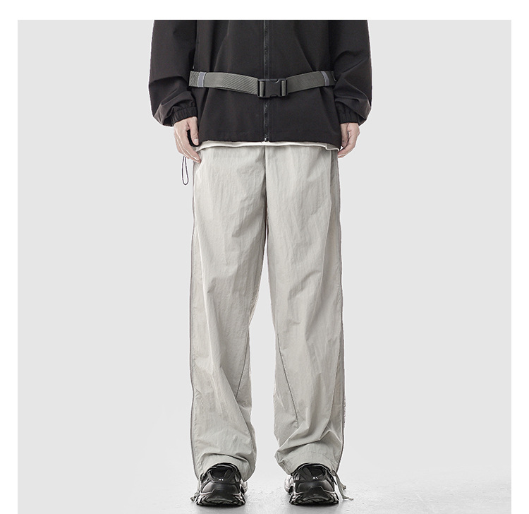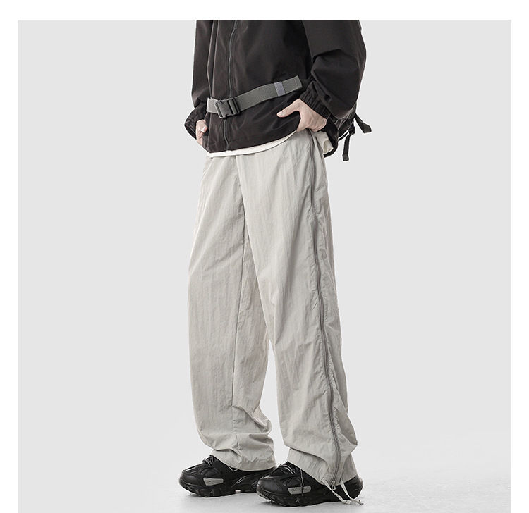 아메리칸 스타일 방수 러시 팬츠 트렌디 한 브랜드 레트로 하이 스트리트 아이스 실크 빠른 건조 지퍼 바지 남성용 조절 가능한 다리 뭉치 캐주얼스토어 가기