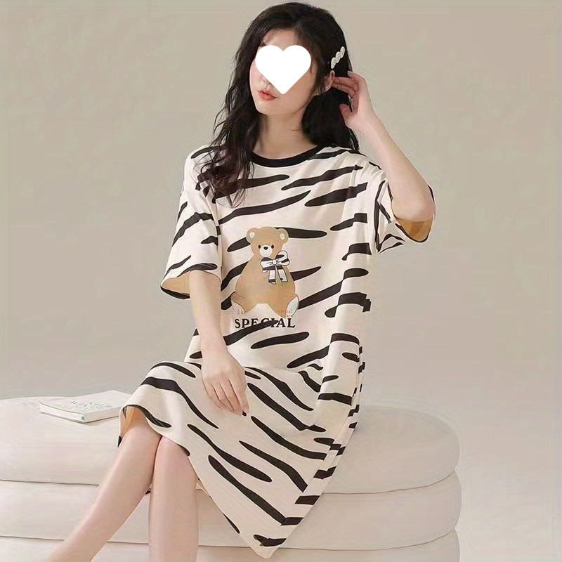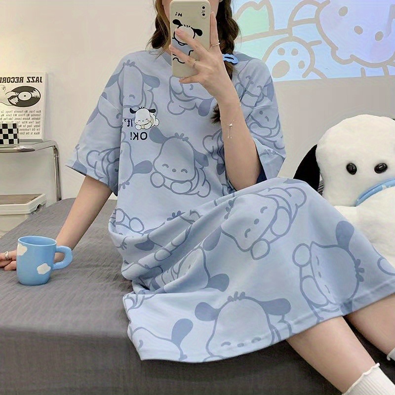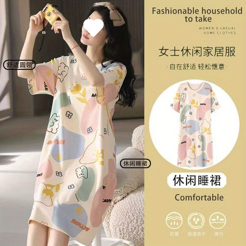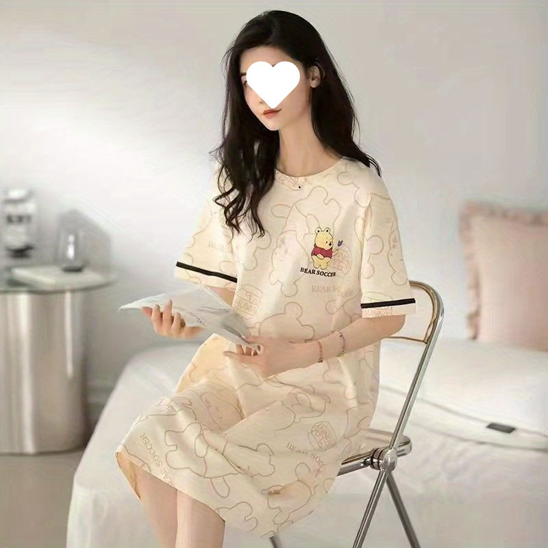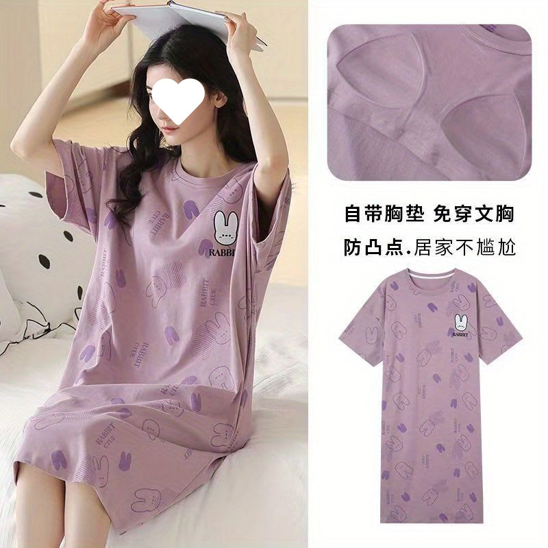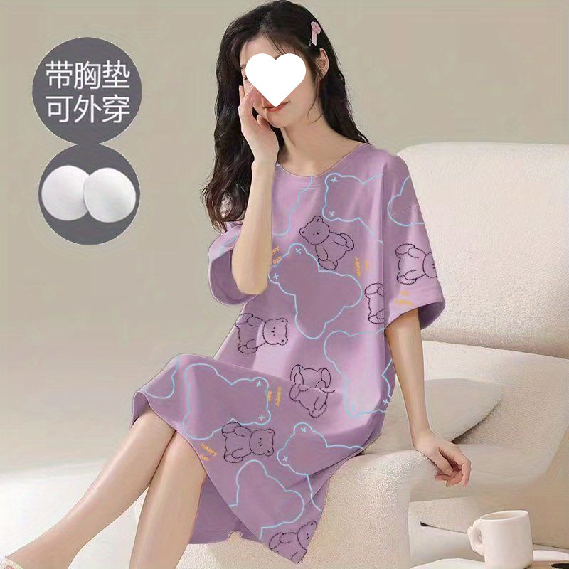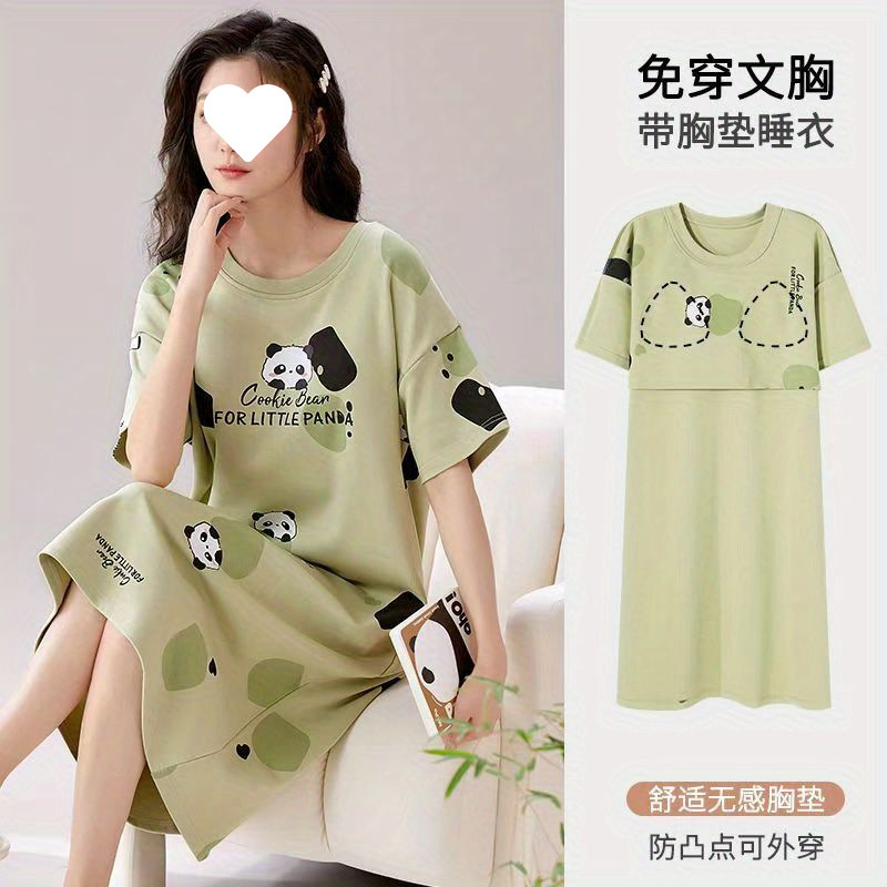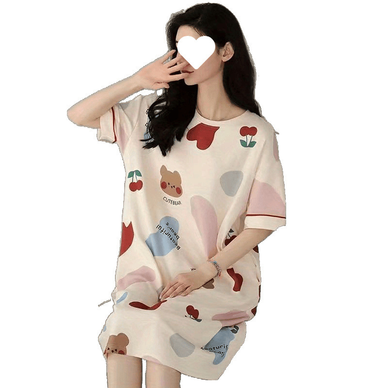 긴 무릎 플러스 사이즈 인터넷 축하 만화 달콤한 여름 잠옷 여성의 봄과 가을 귀여운 가슴 패드와 여성의 여름 원피스스토어 가기