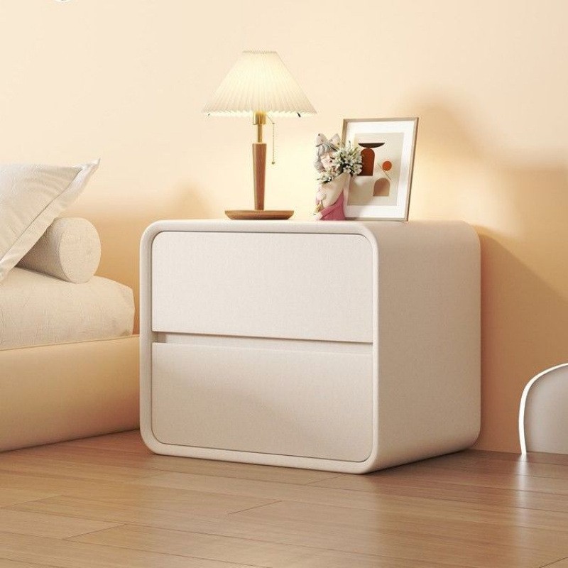 크림 스타일 침대 옆 테이블 간단한 현대 단단한 나무 가죽 침대 옆 테이블 작은 초소형 20cm 미니멀리스트 미니 스토리지 캐비닛