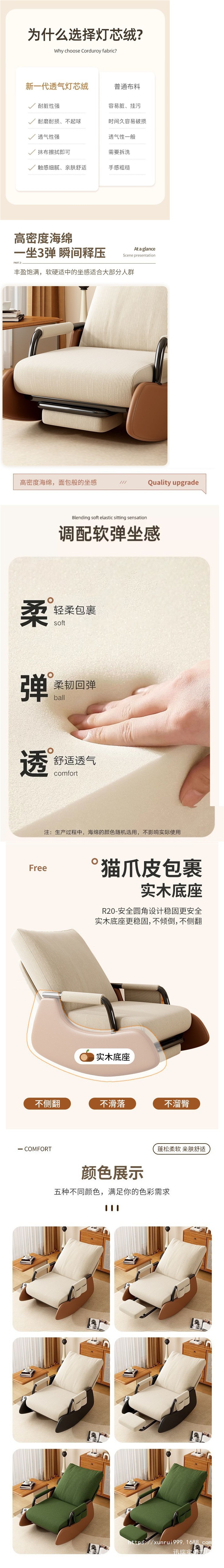 북유럽 스타일 리클라이너 레저 의자 흔들 의자 발코니 게으른 소파 의자 싱글 코트야드 거실 침실 낮잠 의자