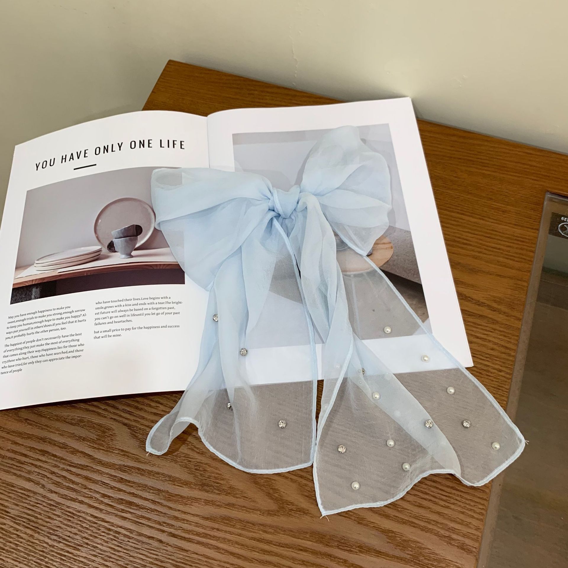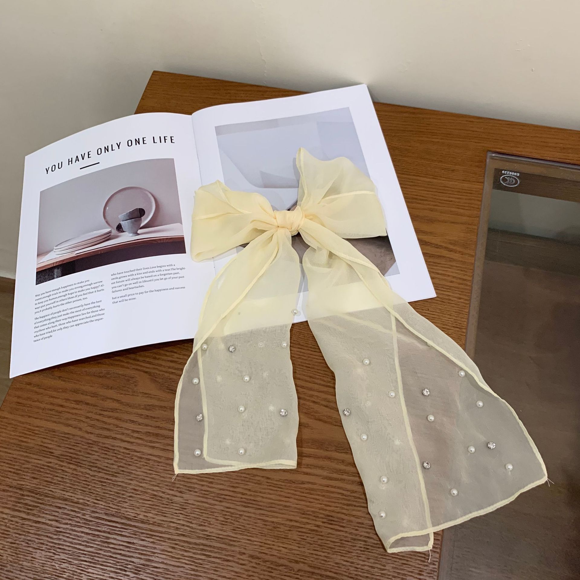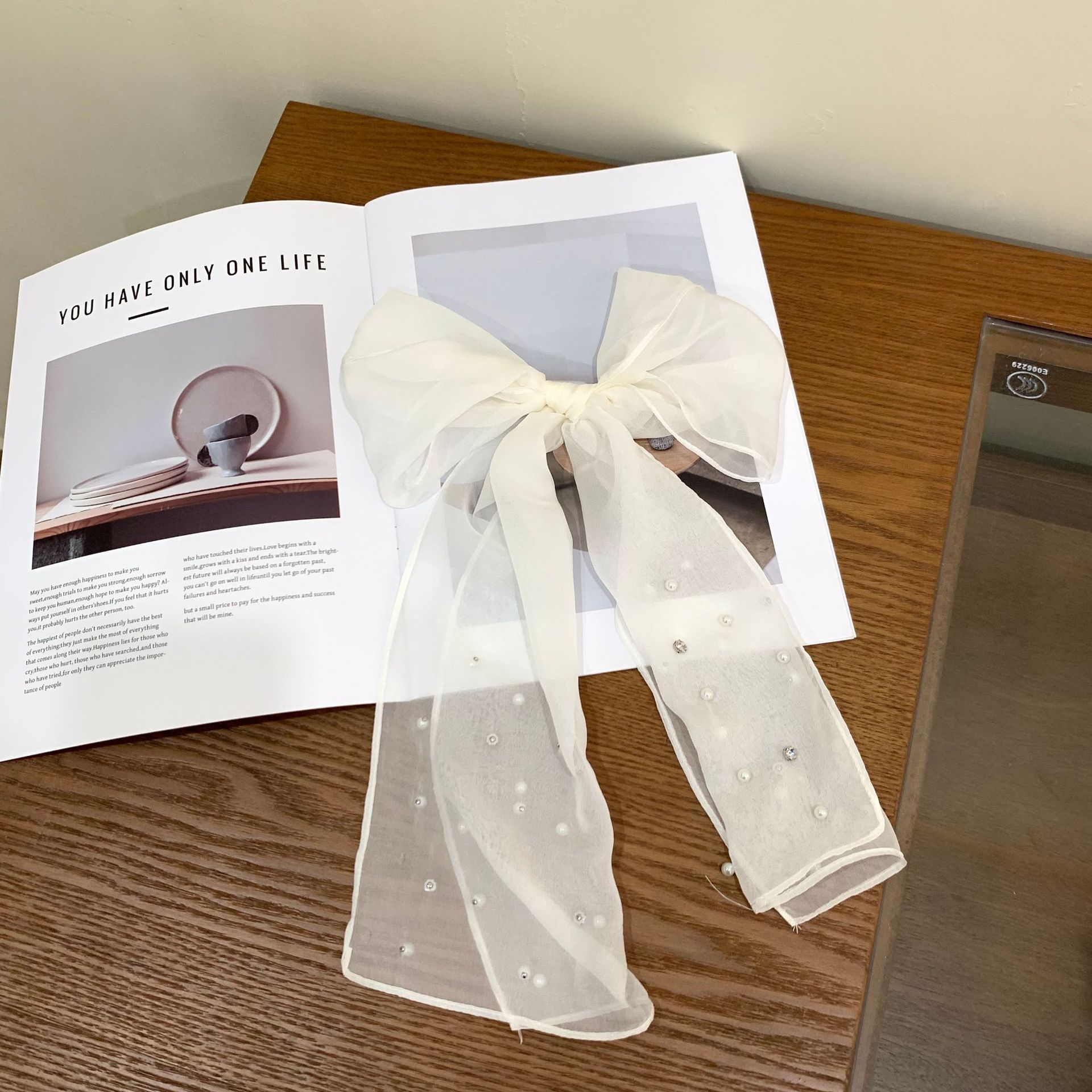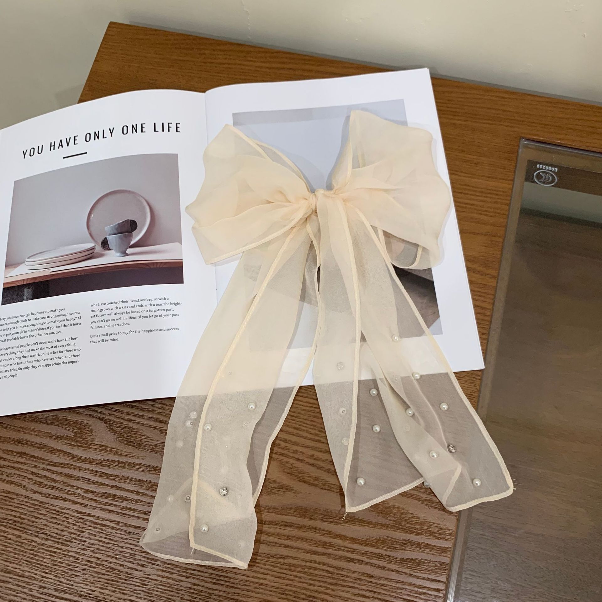 한국 틈새 ~ 우아한 달콤한 소녀 구슬 긴 실크 스카프 높은 감각 넥타이 헤어 인터넷 빨간 사진 리본 조수스토어 가기