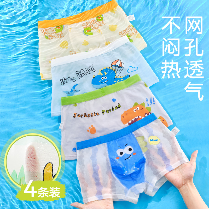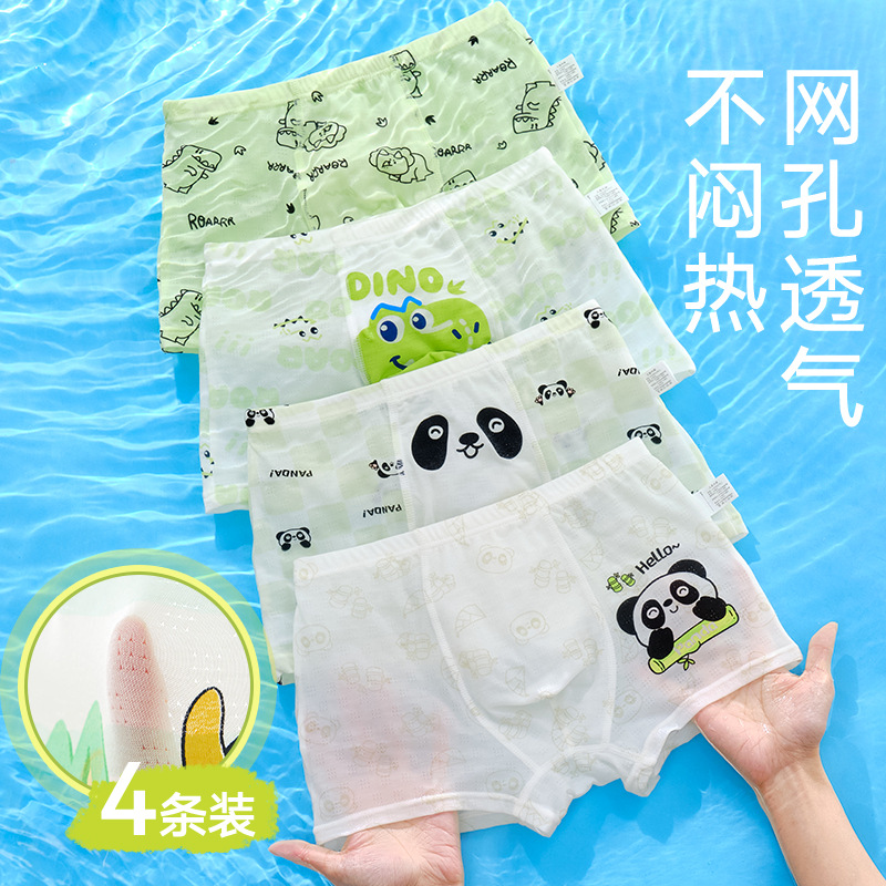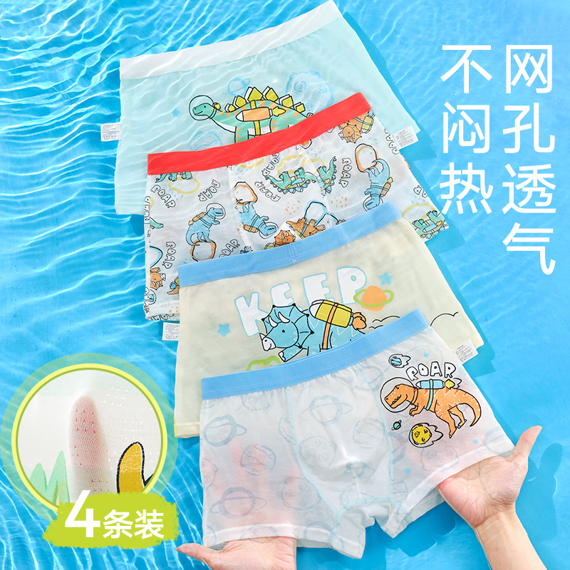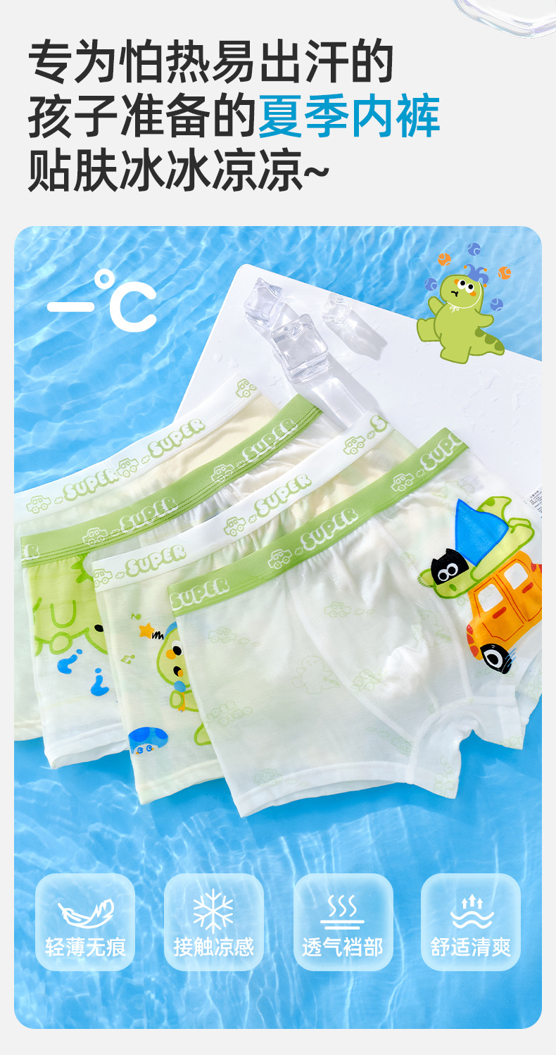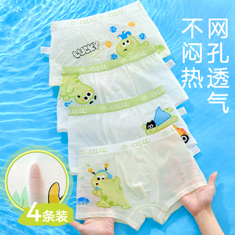 10A 항균 소년 속옷 아이스 실크 4 코너 반바지 어린이 소년 중 · 대형 어린이 복서 반바지 여름 얇은스토어 가기