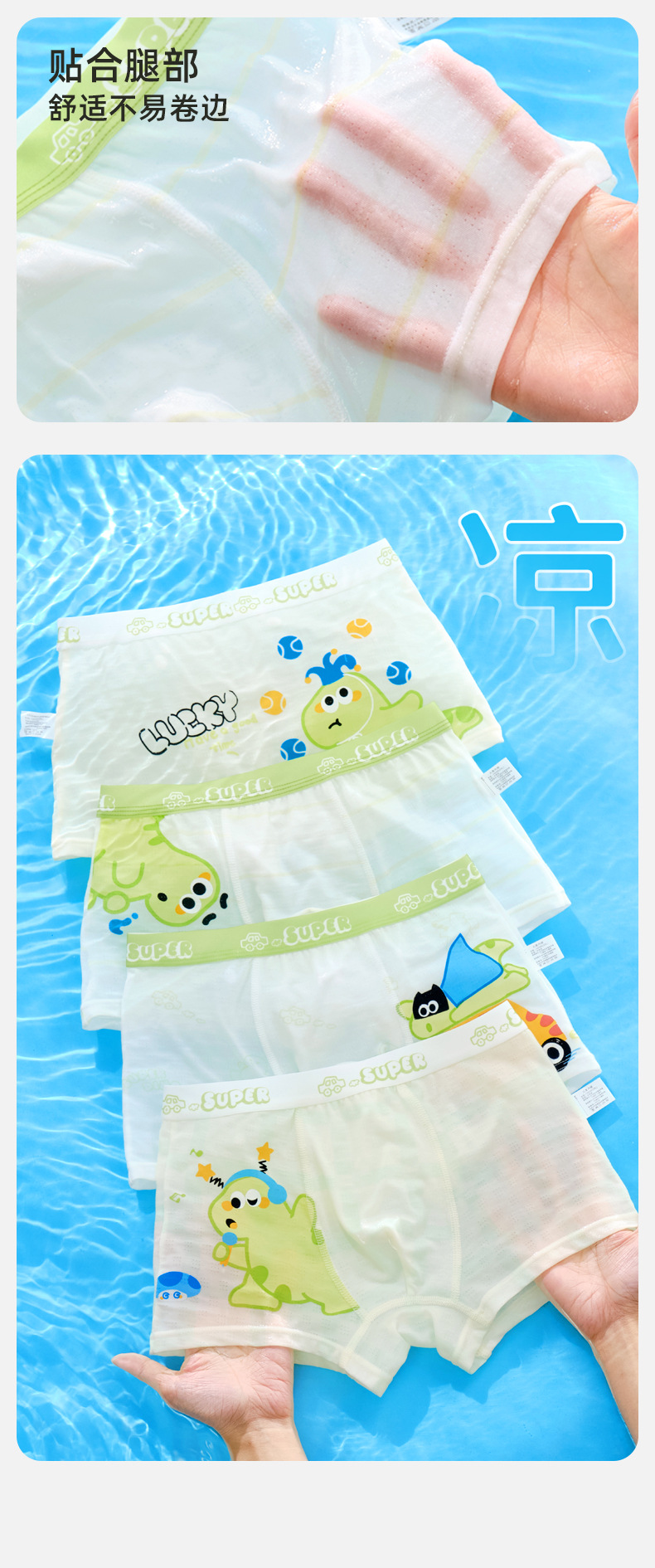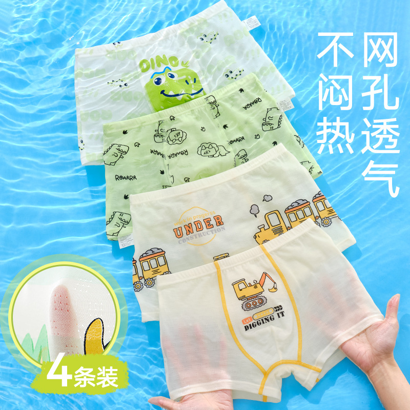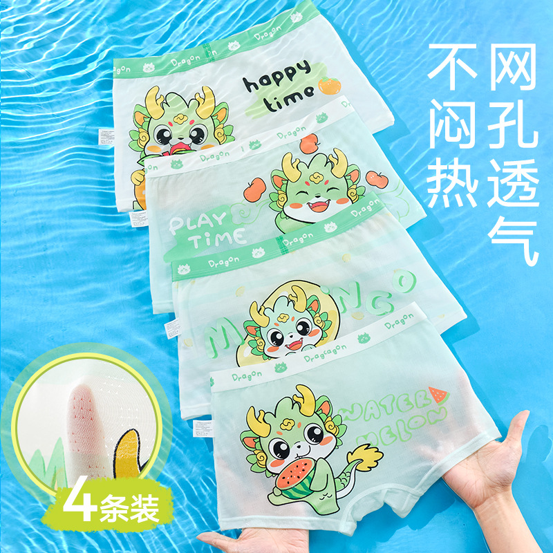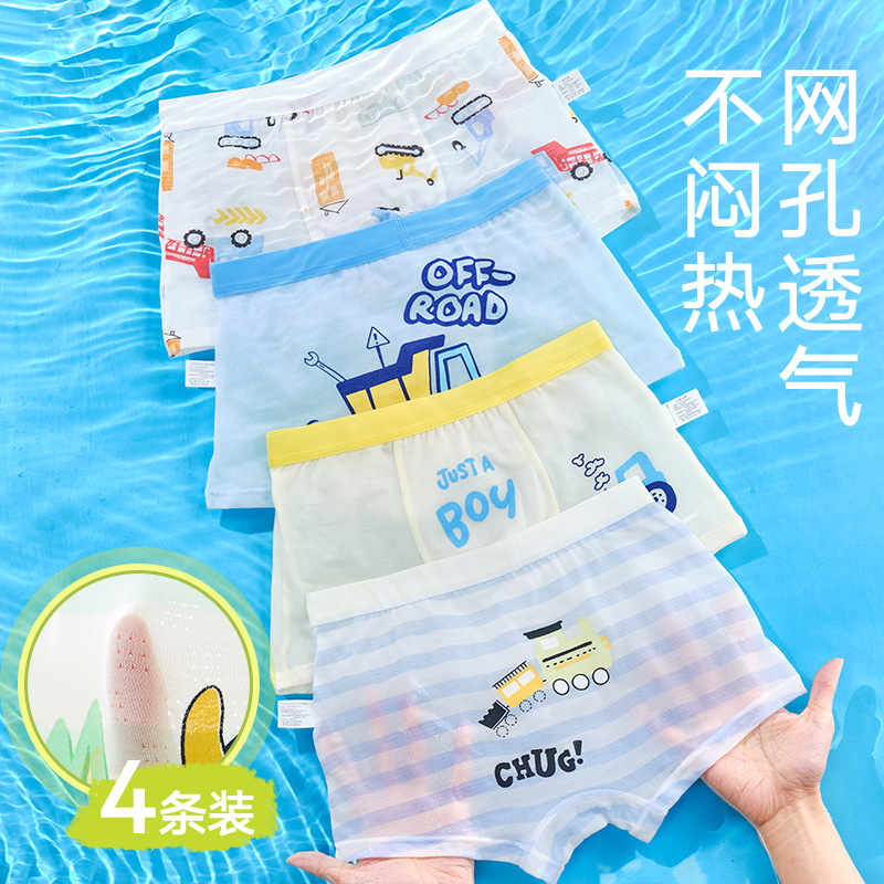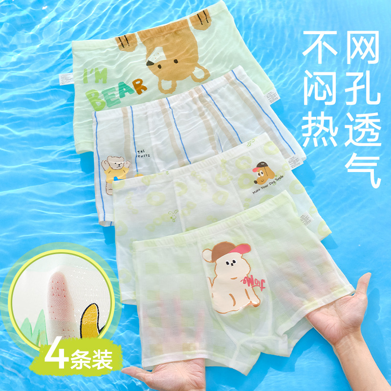 10A 항균 소년 속옷 아이스 실크 4 코너 반바지 어린이 소년 중 · 대형 어린이 복서 반바지 여름 얇은스토어 가기