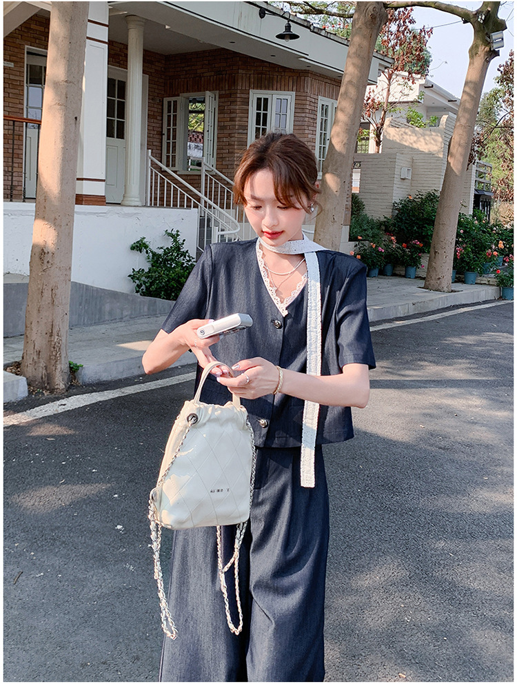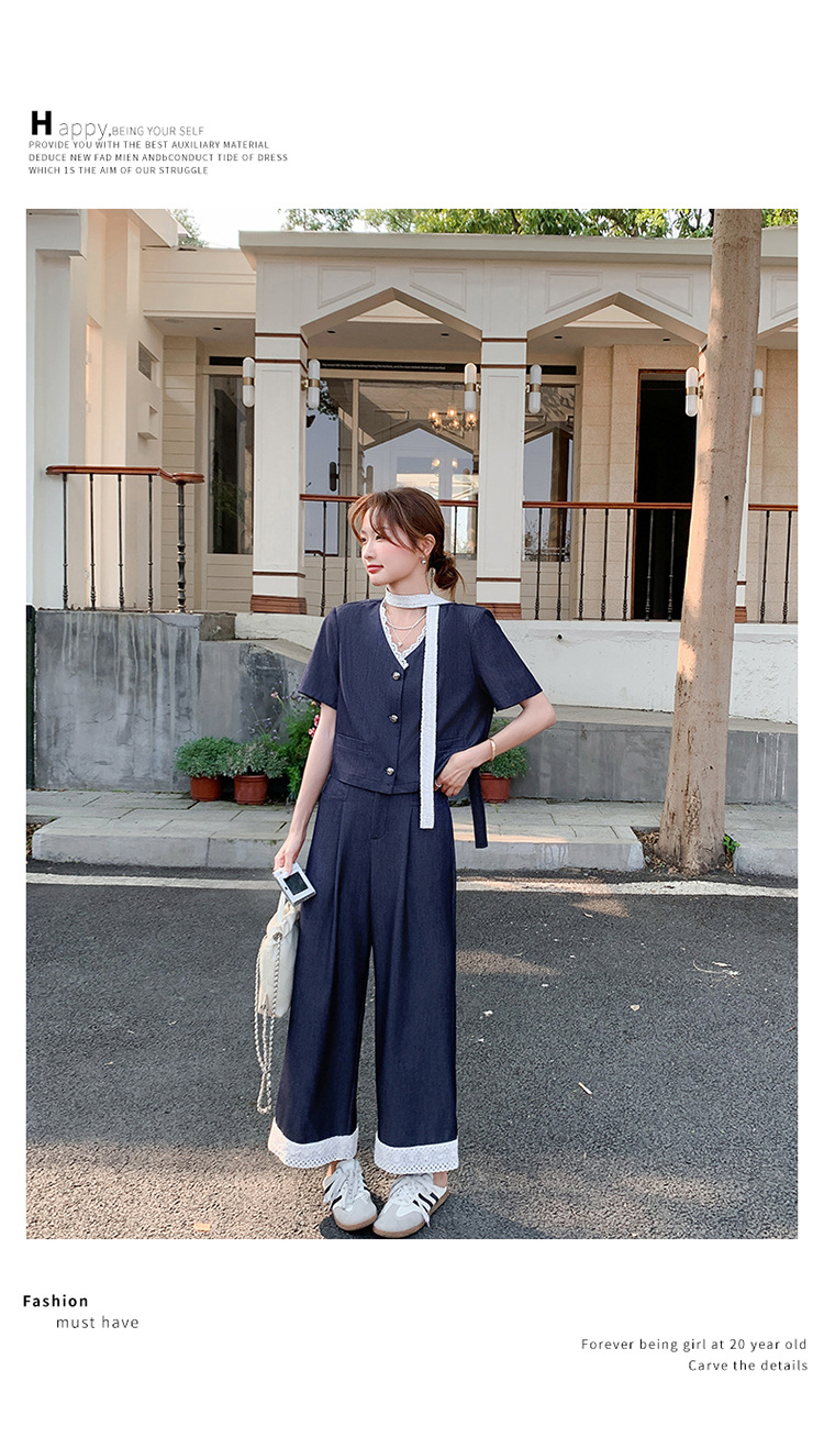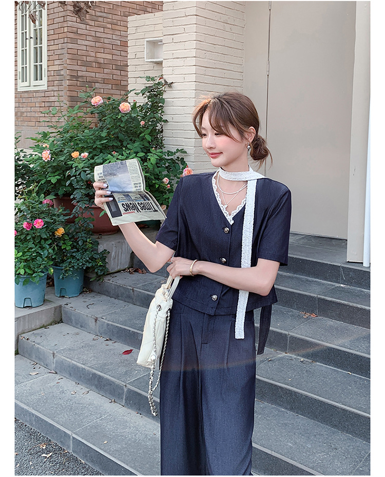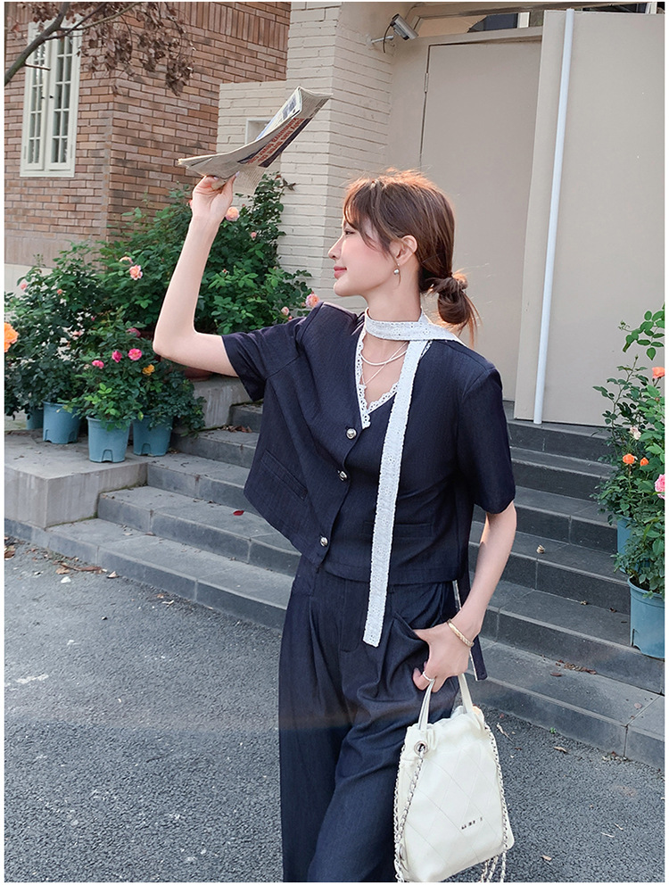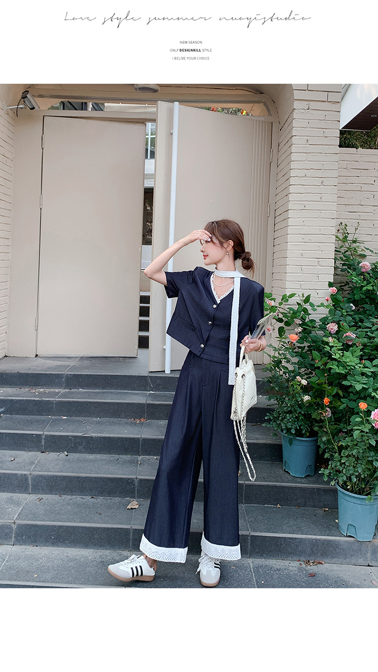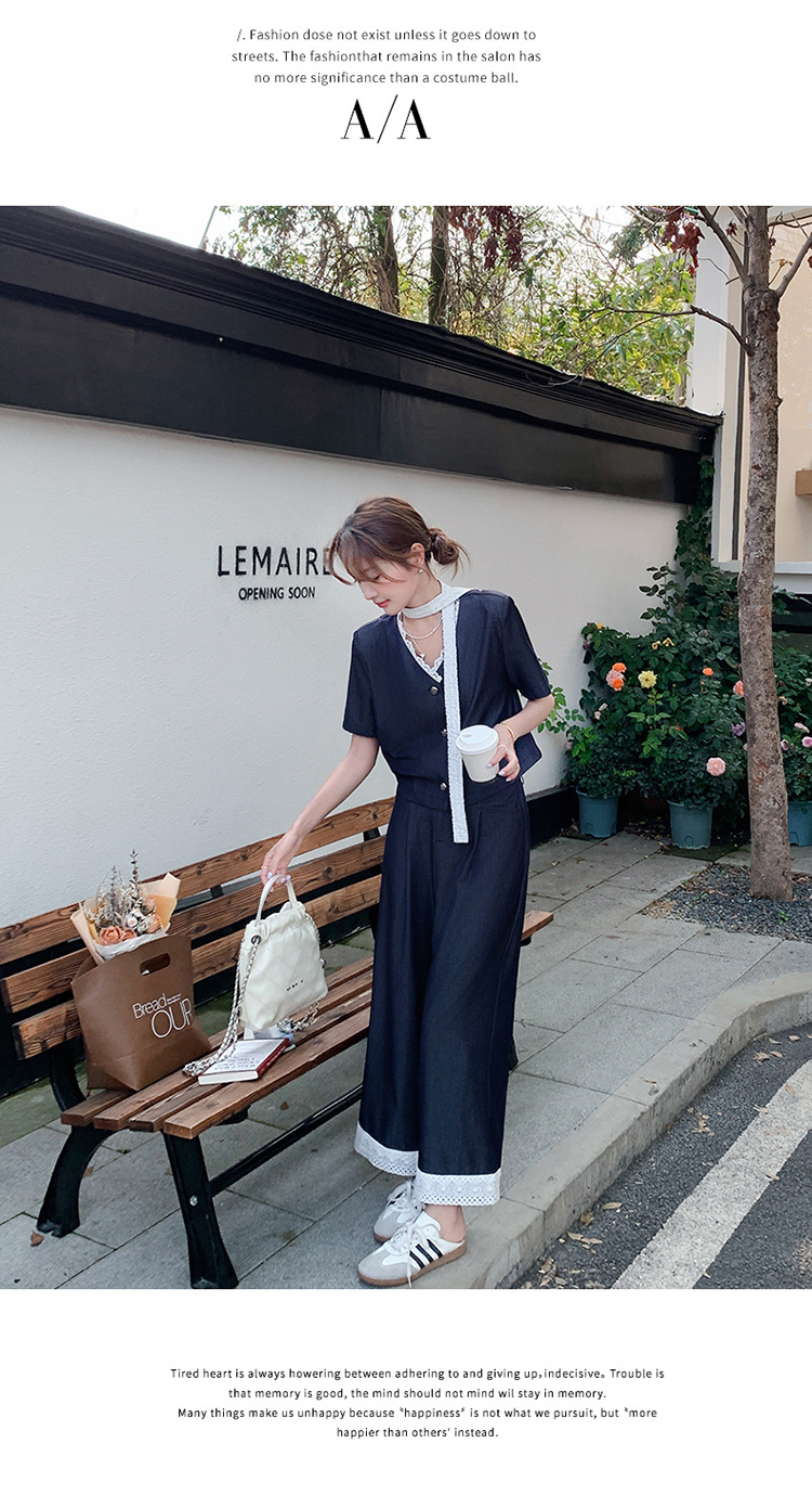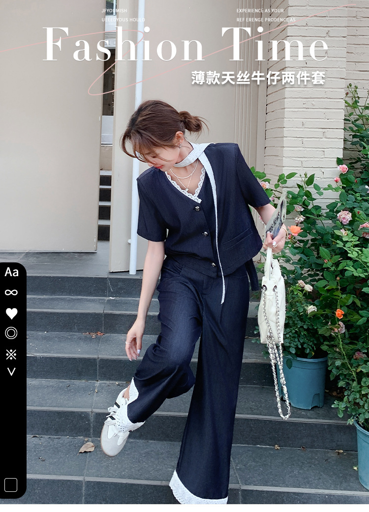 한국식 고급 텐셀 데님 세트 여자 2025 년 여름 새 쇼트 재킷 와이드 레그 팬츠 투피스 세트