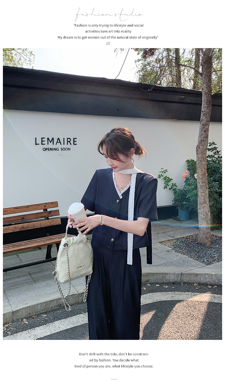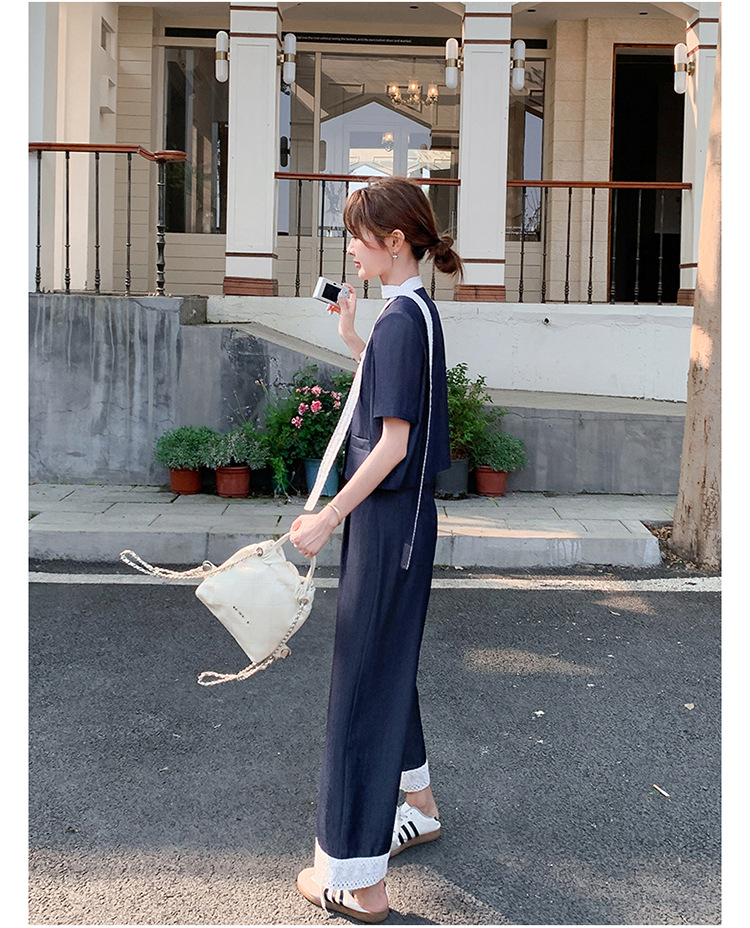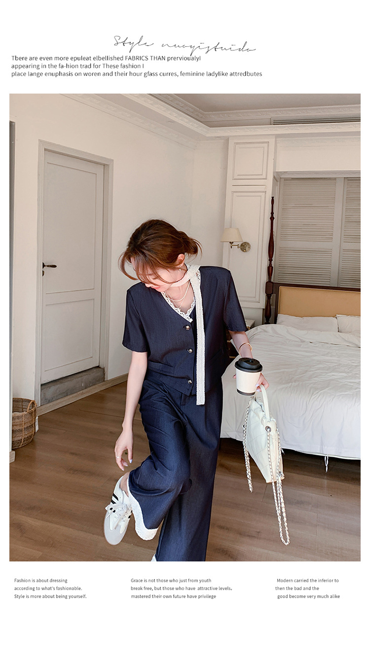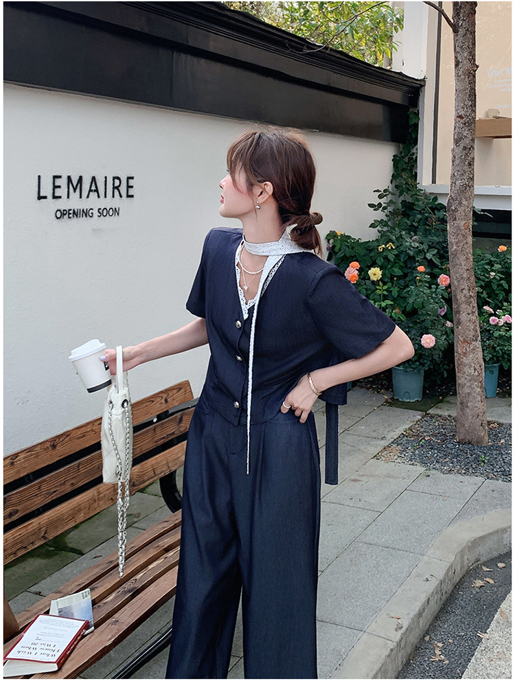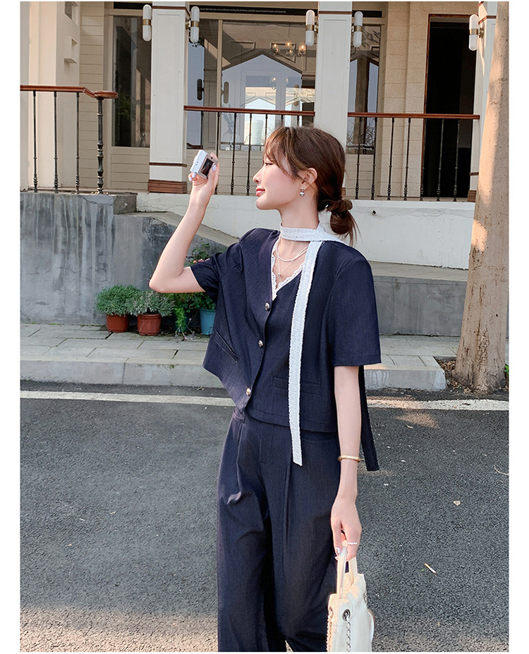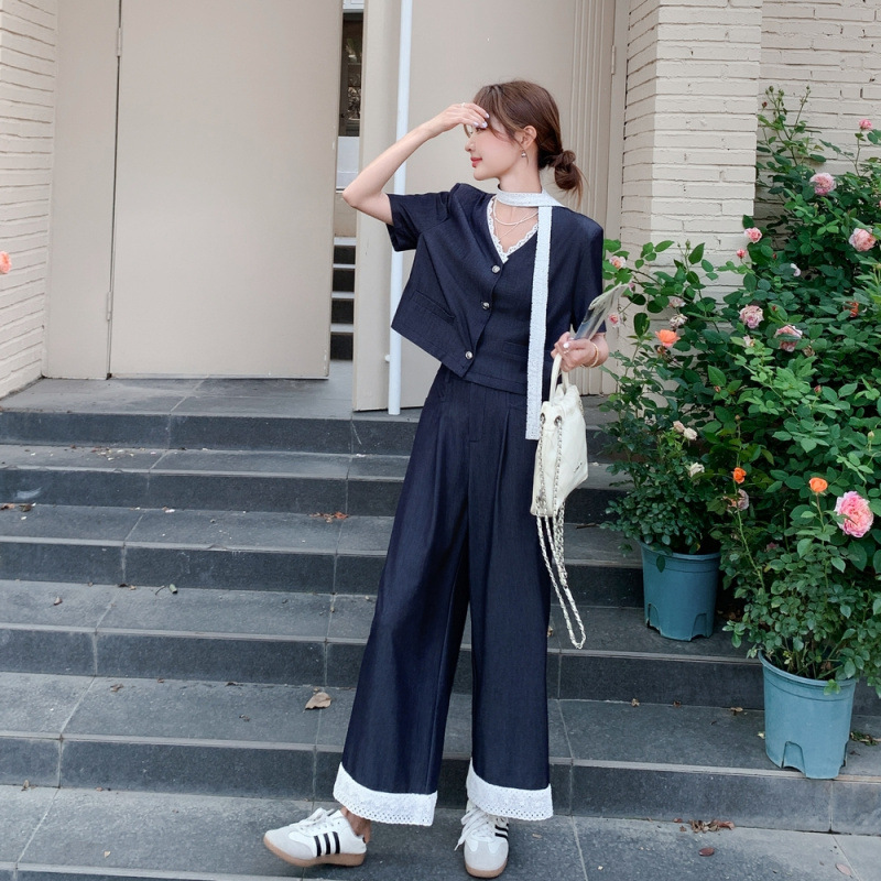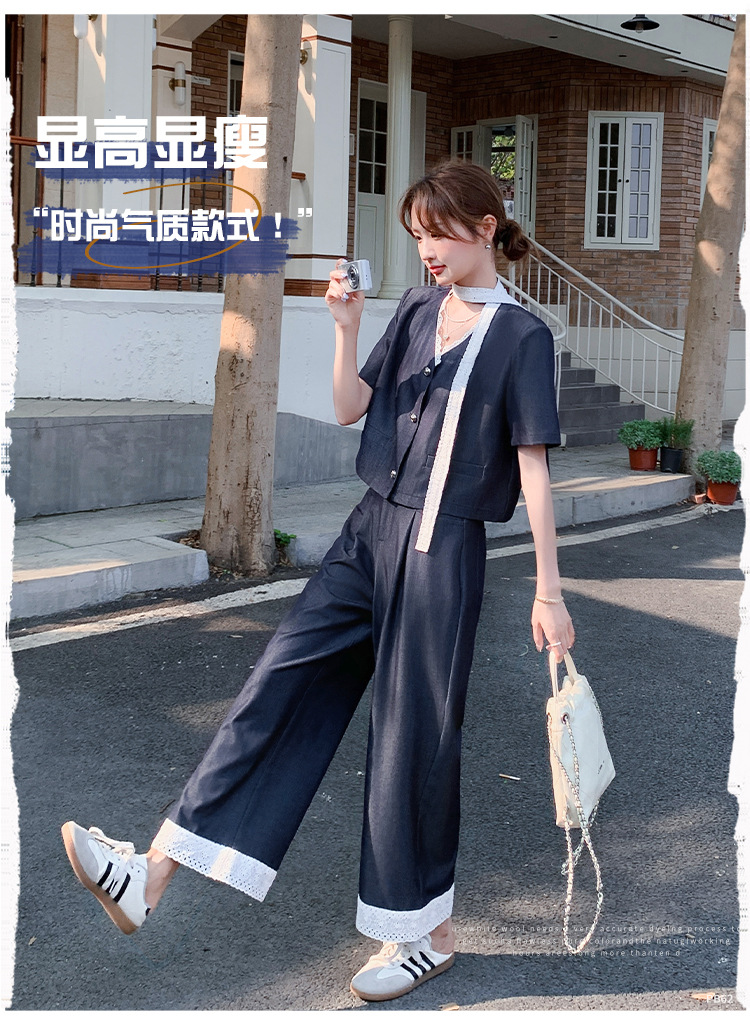 한국식 고급 텐셀 데님 세트 여자 2025 년 여름 새 쇼트 재킷 와이드 레그 팬츠 투피스 세트