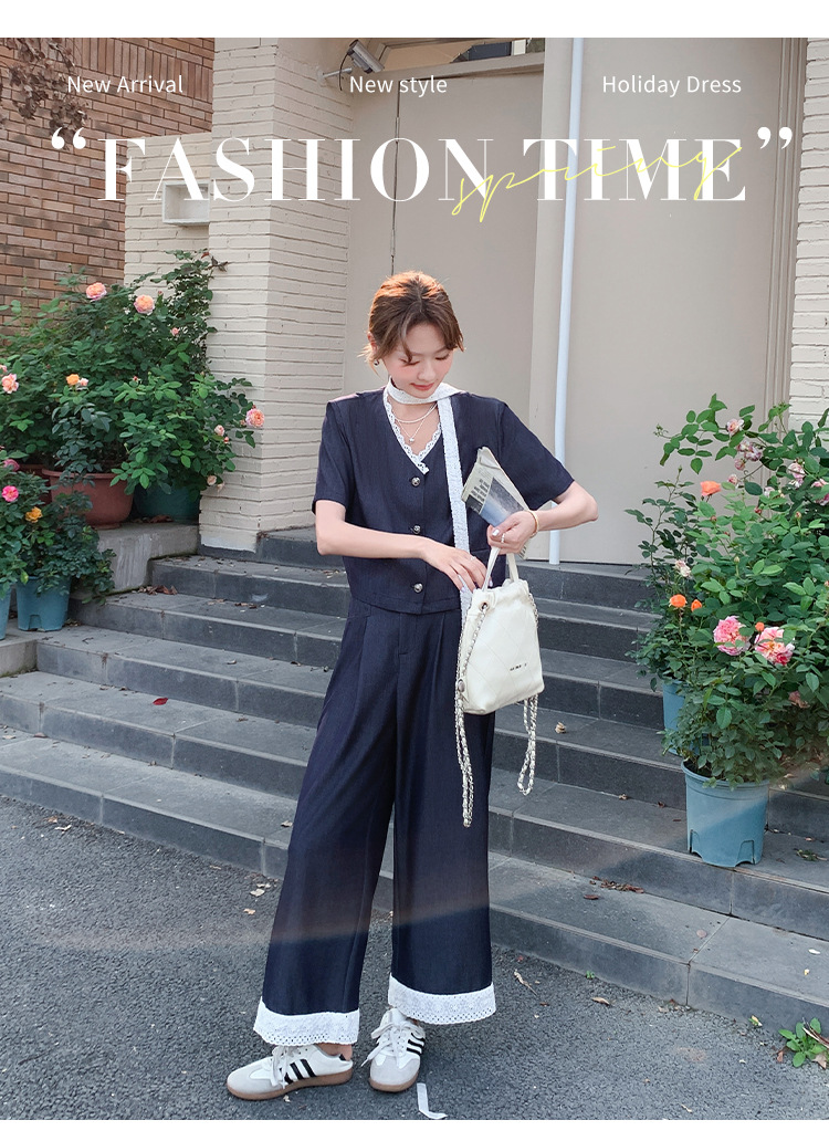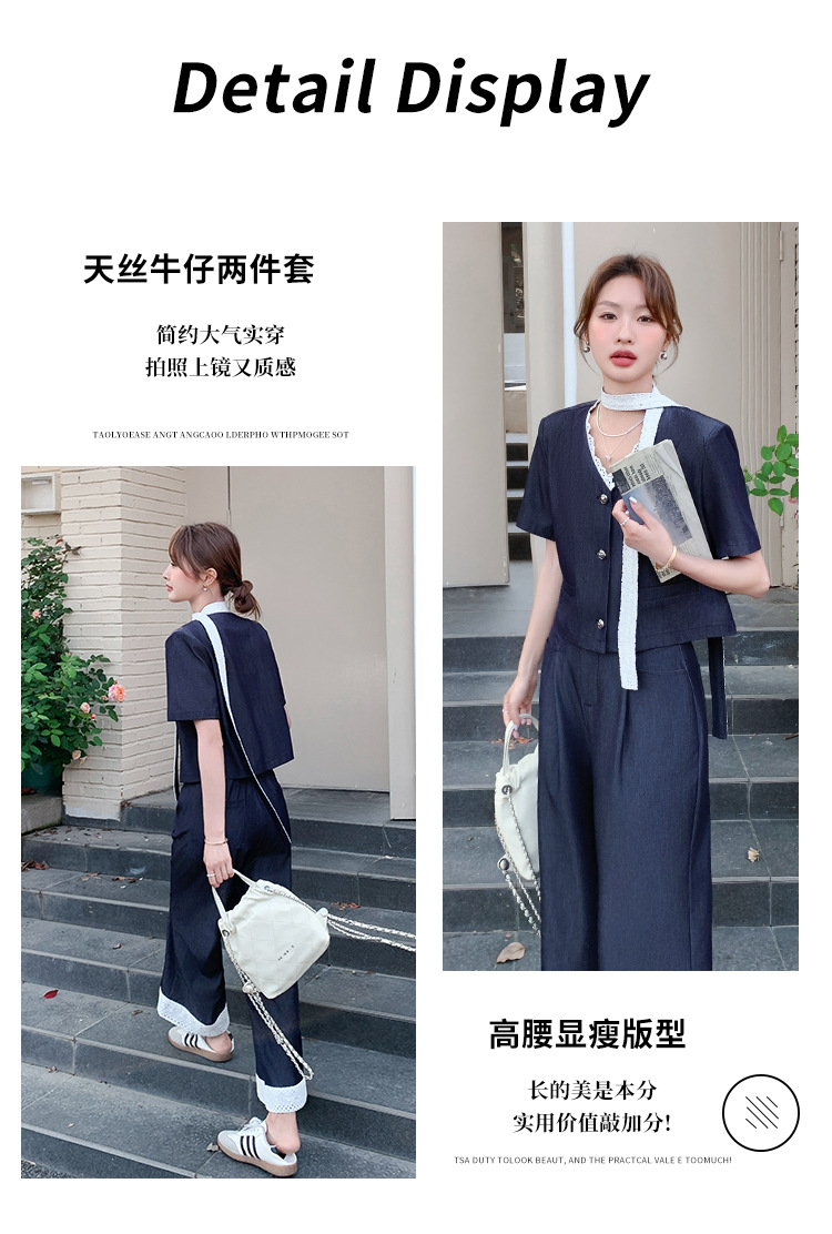 한국식 고급 텐셀 데님 세트 여자 2025 년 여름 새 쇼트 재킷 와이드 레그 팬츠 투피스 세트스토어 가기