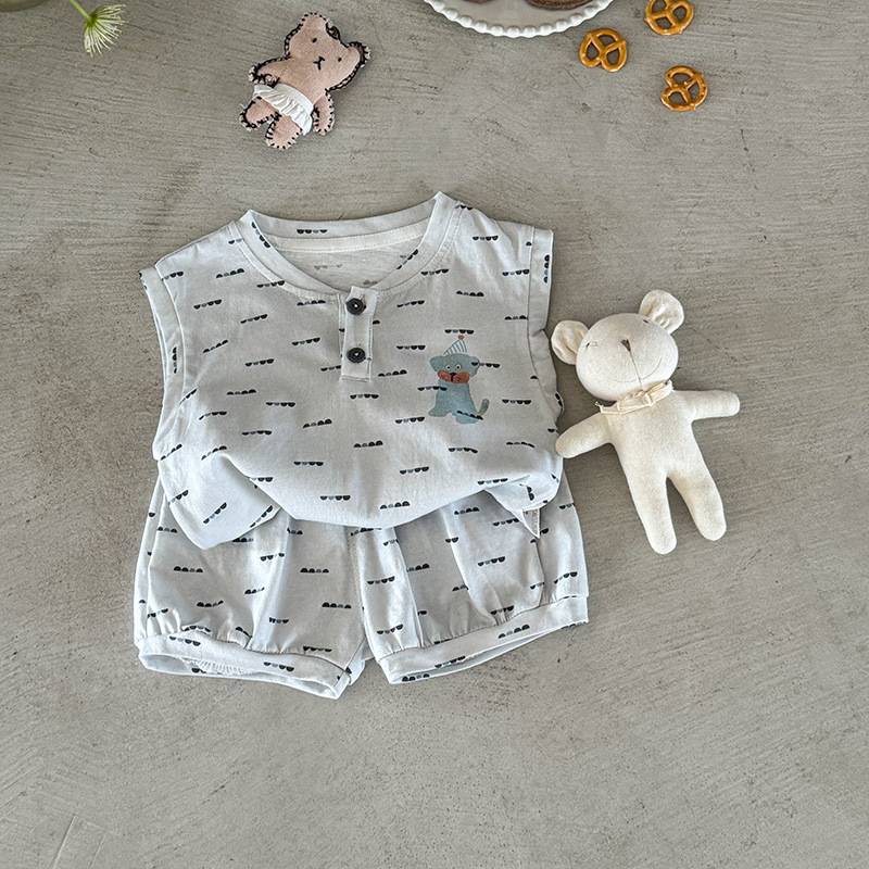 [여름 깨진 크기 정리] 아기 소년과 소녀 아기 옷 여름 얇은 투피스 세트 비 품질 환불 불가